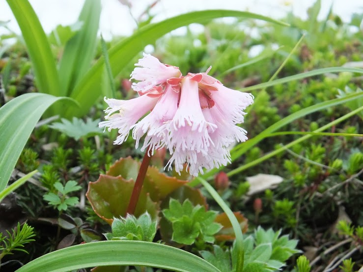 そして、何と言っても豊富な高山植物、ハクサンイチゲ、ハクサンコザクラ、ハクサンチドリ、ウラジロヨウラク、ゴゼンタチバナ、ミヤマキンバイ、ベニサササドウダンなど、数十種は見られるはずです。天空のお花畑と言われるのはダテじゃないです。