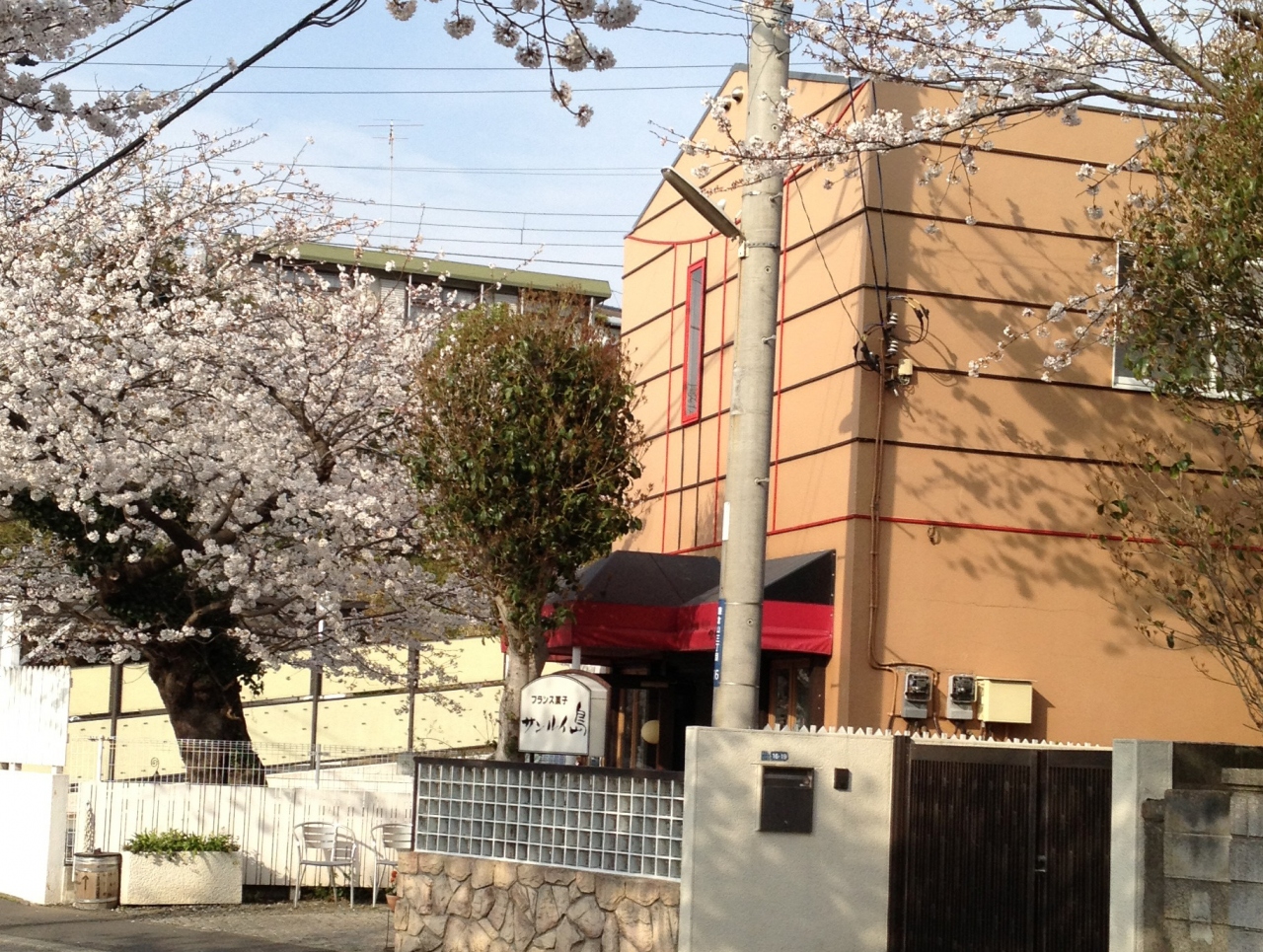 桜の季節は鎌倉山を美しくし、可愛らしいお店の外観も更に素敵になります。