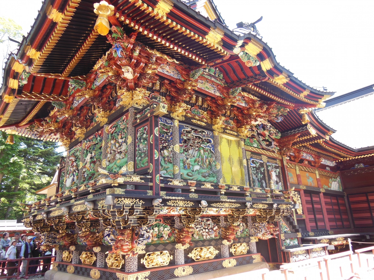 日光東照宮にも似た彫刻や色合いがとても素晴らしいと思いました。間近で見ることができるのも良いと思います。