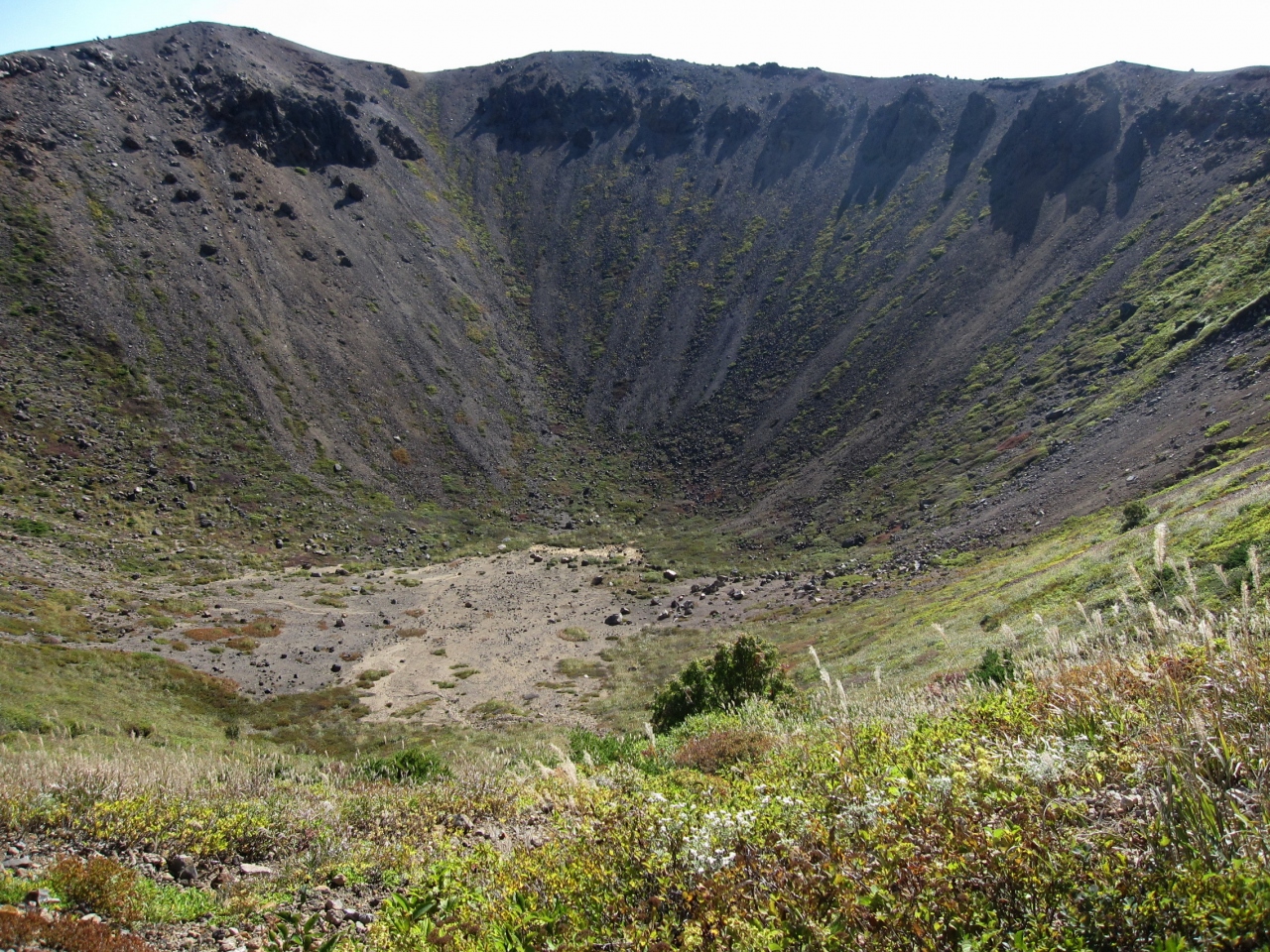 火口は深さ70m直径500メートルあり、一周するのに1時間掛るそうです。