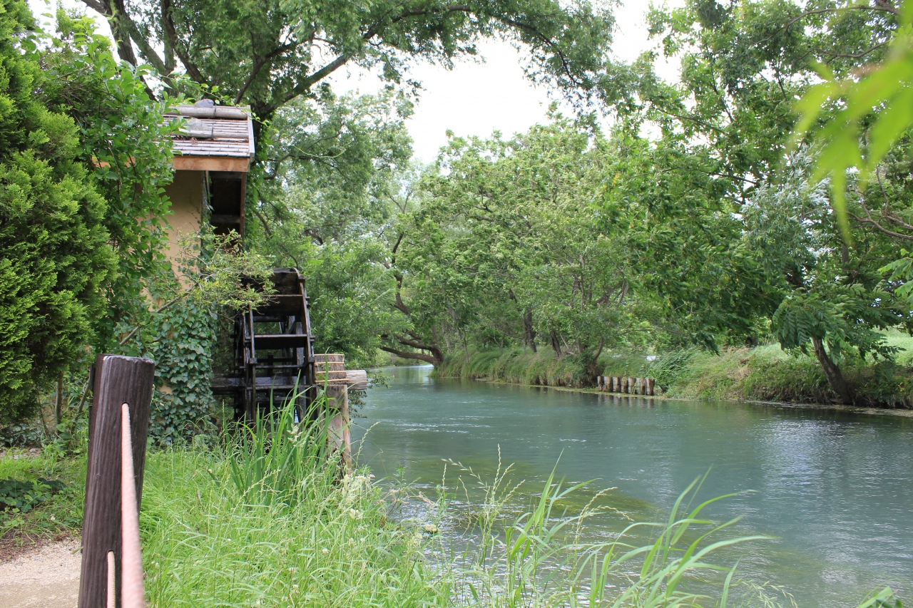 川沿いの水車小屋、わさび田風景に癒されま~す。