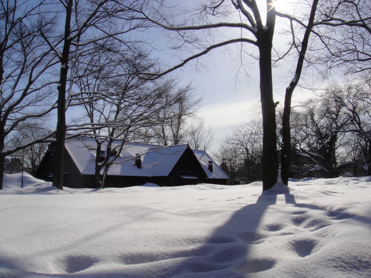 アクセスは地下鉄南北線、北18条駅を降りて18条の通り(環状通)を西に進み、地下道(エルムトンネル)ではなく、地上の側道を行きます。大学の構内にあるので、ゲートがあり、車の場合はその先を進むのに入構料がとられてしまいます。ただ、目の前にモデルバーンの入口が見えていますし、18条の駅からも500mほどですので、充分、徒歩圏内ではないでしょうか。駅の近くはお店などもあり、お弁当などを調達して散策するのもよいかと思います。
