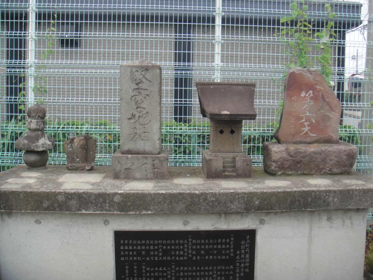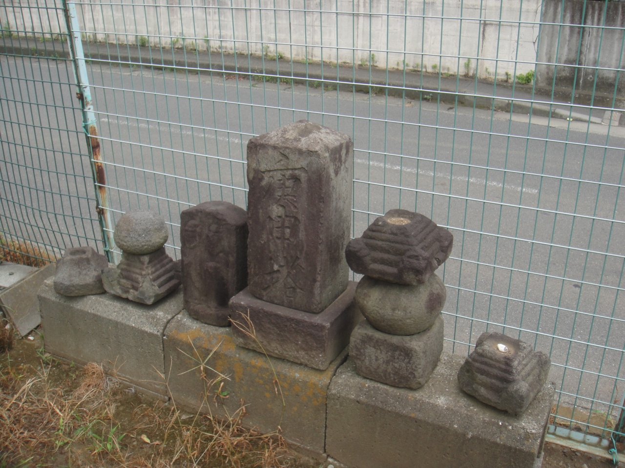 昔、付近に屋敷や倉などが並んでいるのが遠くから見え、倉見という地名がついたとの説があります。その名残の道祖神などの石像を集めて祭ってあります。周囲は住宅地や工場が立ち並んでいますが、駅からも離れ(JR相模線倉見駅から直線で1kmほど)、バスも寒川駅を通るコミュニティバスが平日のみ1時間に1本、近くの「湘南ユニテック前」に止まる程度です。しかし一時期、江戸幕府の旗本、高木清方という人物が付近一帯に屋敷を建てていたということで、墓やゆかりの寺(行安寺)などが付近に残っています。倉見神社(300mほど北側)などと合わせて巡るのも一興だと思います。用を足すのに前の道路を南へ200mほど行った所にスーパーみつるやがあります。素朴で小さな商店です。石像群は小さなものですが、公民館(才戸原)がある公園の一角に祭られ、地名にも残る往時の繁栄の証として静かに佇んでいます。