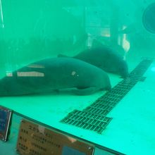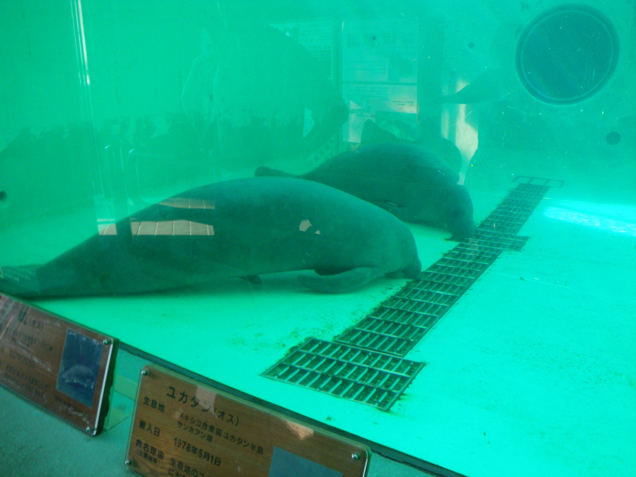 地上と水中の両方から観察ができます。水槽の下でじっとしているマナティ。息継ぎをしに2~3分で水面にあがると説明書きがあったので、しばらく待っていましたがじっとしたまま。館内の暑さにこちらが負けてしまい、動くマナティを見ることができませんでした。次回は必ず!
