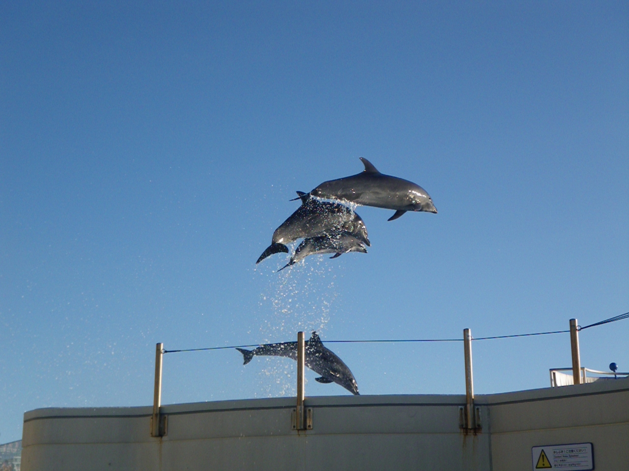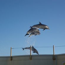 無料で見れるイルカショー。美ら海水族館に来たらオキちゃん劇場に寄らなきゃ損!イルカの華麗なジャンプに見入ってしまいます。
