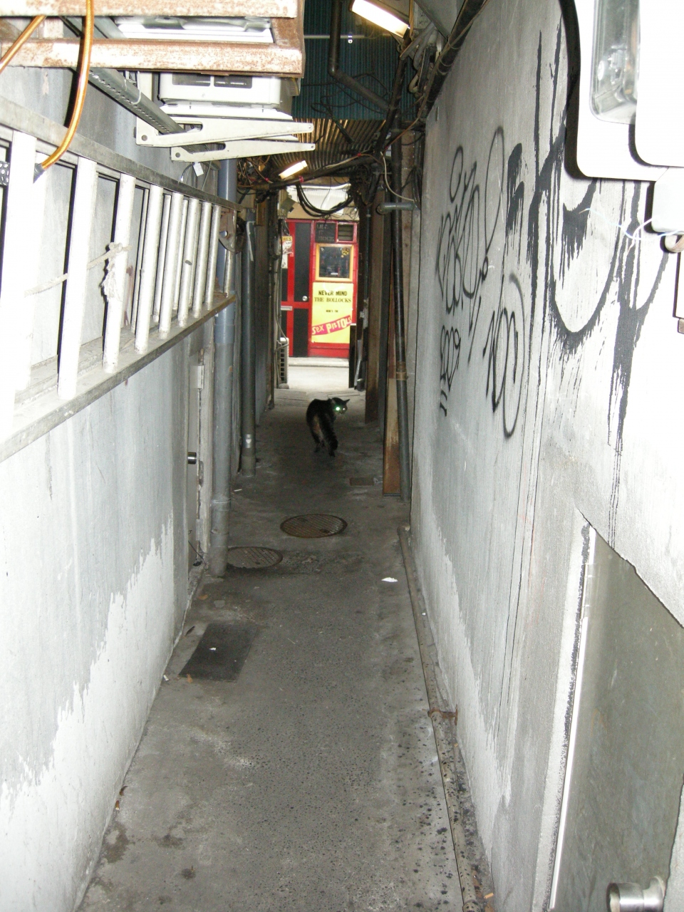 東京都新宿区歌舞伎町一丁目にある飲食店街。夜は有名な飲み屋街ですが、あたりまえですが昼間に行っても誰もいません。店も閉まっています。でもこれはこれで良い雰囲気を醸し出しているとおもいます。ネコだけ見て帰りました。