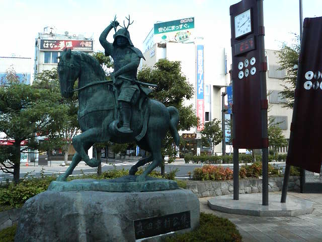 上田駅のお城口(北口)を出て、正面に建っている像です。