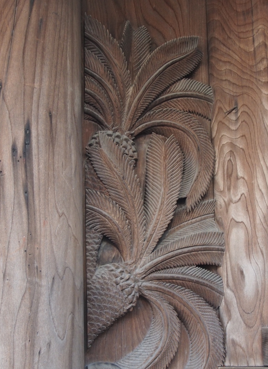 祇園山笠の時期だったからでしょうか?ラーメン屋台が準備中で驚きました。さすが博多と感心したものです。由緒ある神社にふさわしく門の扉や柱の彫刻が素晴らしかった必見です。犬や蛙、ソテツの彫刻です。こまいぬは御影石でした。