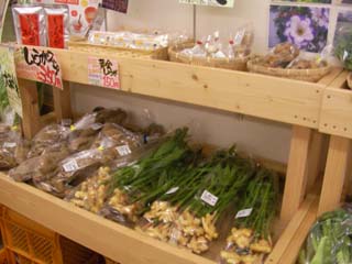 ホテル春日部エミナースの彩の湯に入った後、県道沿いに北春日部駅に向かう途中に農産物の直売所の「四季の里うちまき」があり寄っていきます。平屋の店内に入ると大根やジャガイモなど地元の農家でとれた野菜が並んでいて、スティックセニョール(120円)、葉しょうが(120円)をお土産に買いました。