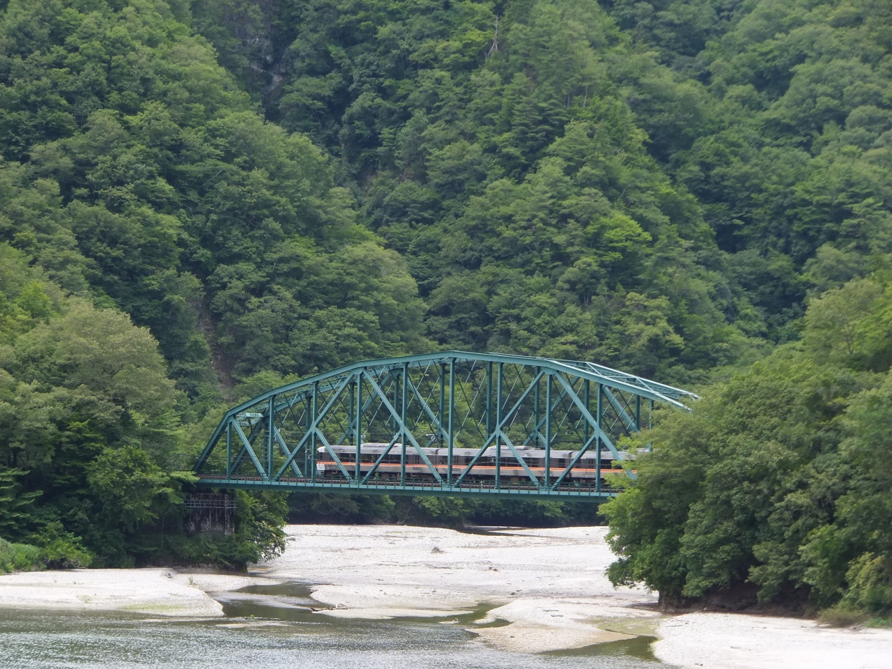 タイミングよく電車の時間に合えば、吊り橋から鉄橋を通る電車が見れます。