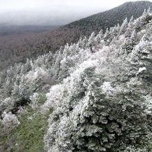 山頂は雪でモノクロの別世界、