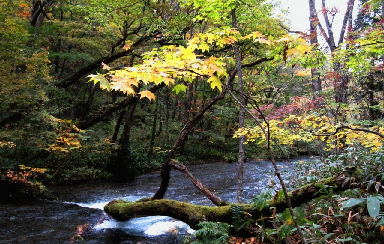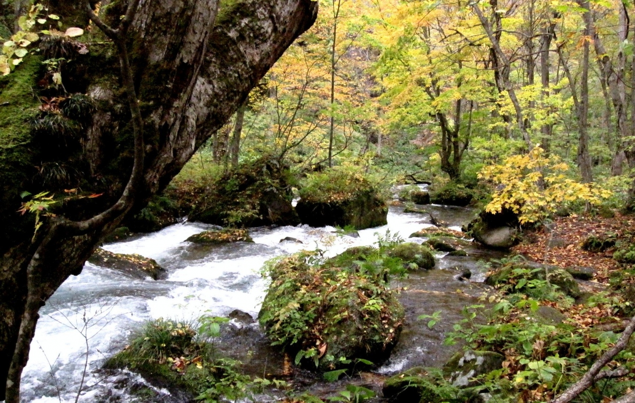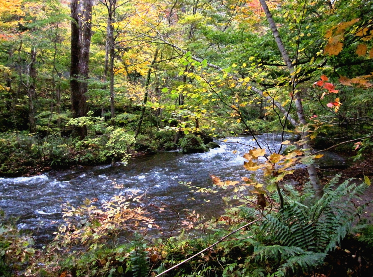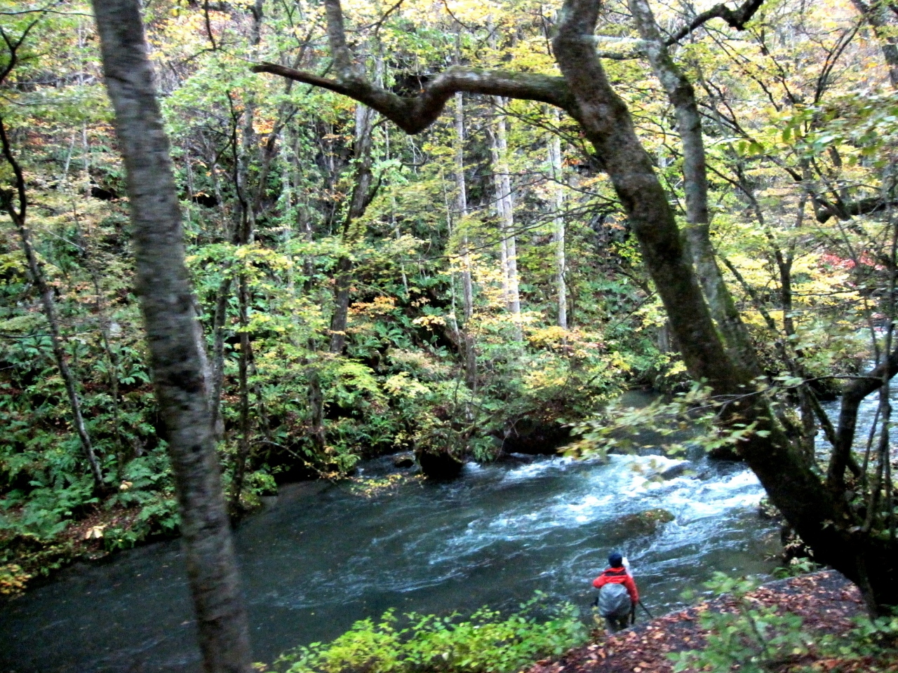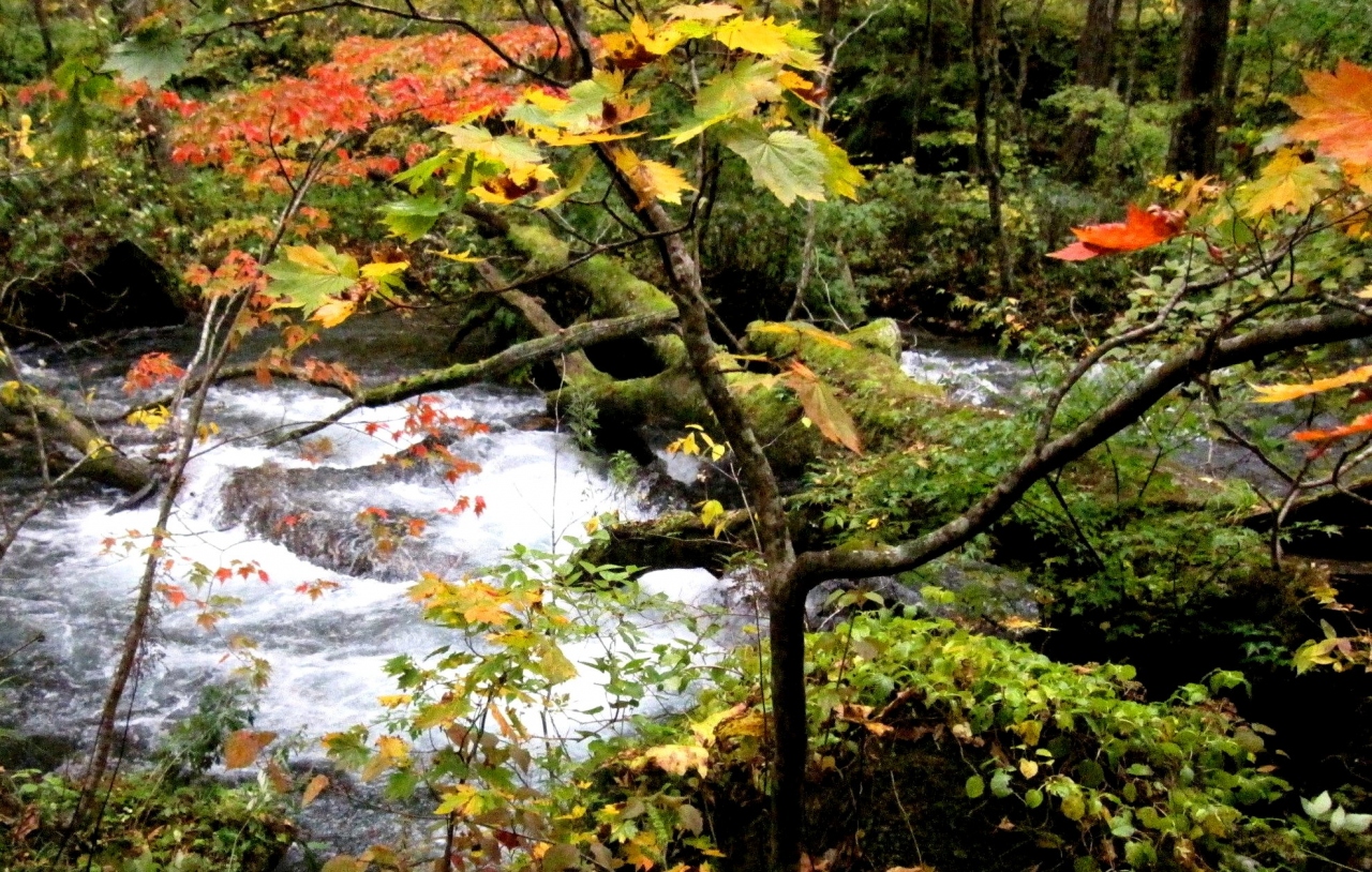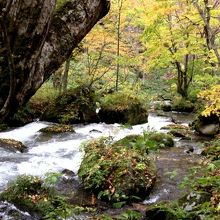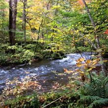 しかし、雨も上がり瑞々しい木々の紅葉と渓流と
