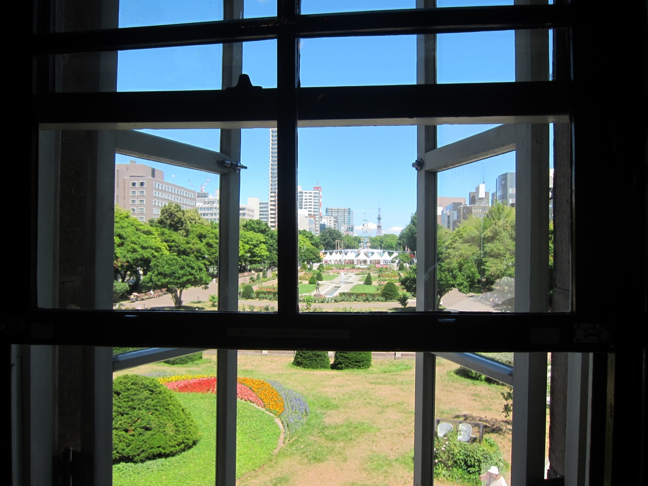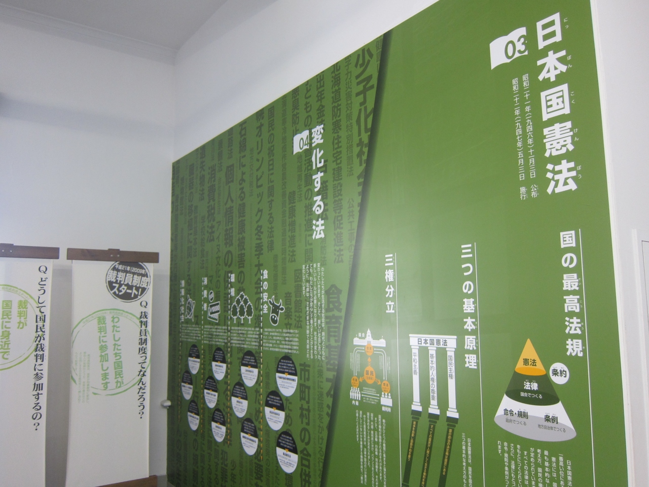 司法入門。目の前の大通公園の歴史が分かる展示パネルなど。