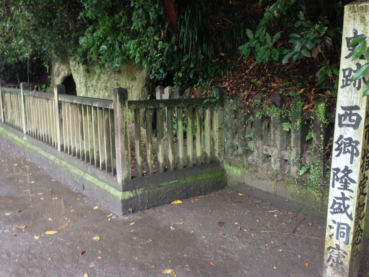 西郷洞窟の前は、広場になっており、左側に階段があり、お土産屋さんがあります。また、階段を上るとそのまた隣に、西郷さんの大きな像と、洞窟がありますが、西郷洞窟ではありませんので気をつけあれ。