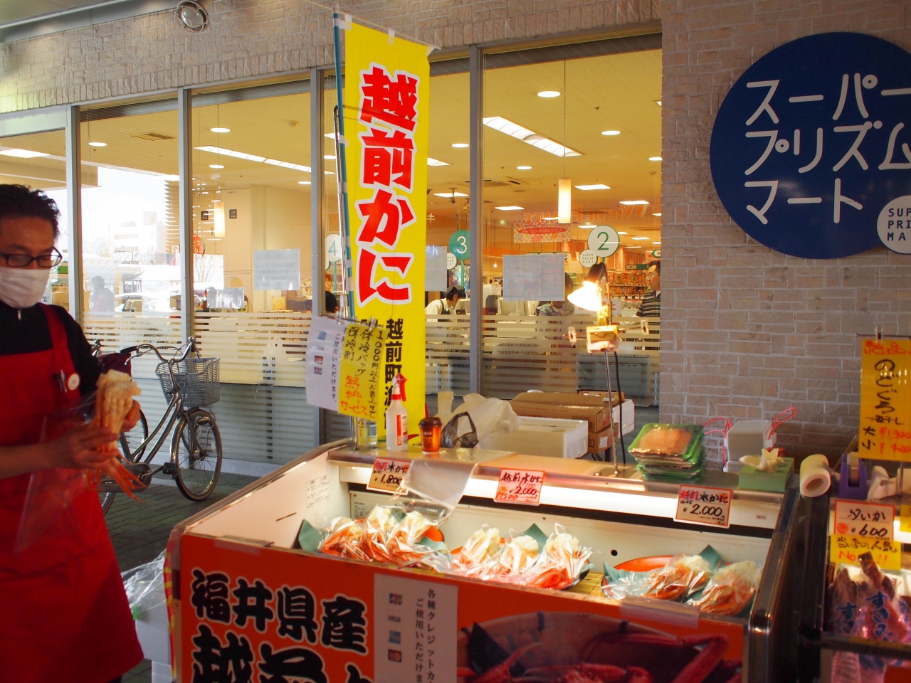 ショッピングセンターもレストランもあるし、駅前から各方面へのバスが出発している福井観光の拠点で、今回永平寺と丸岡城も福井駅からのバスを利用しました。バスの本数は少ないですが、時間つぶしのウィンドーショッピングには困りません。当然のことながら生きの良さそうな越前ガニが売られていました。