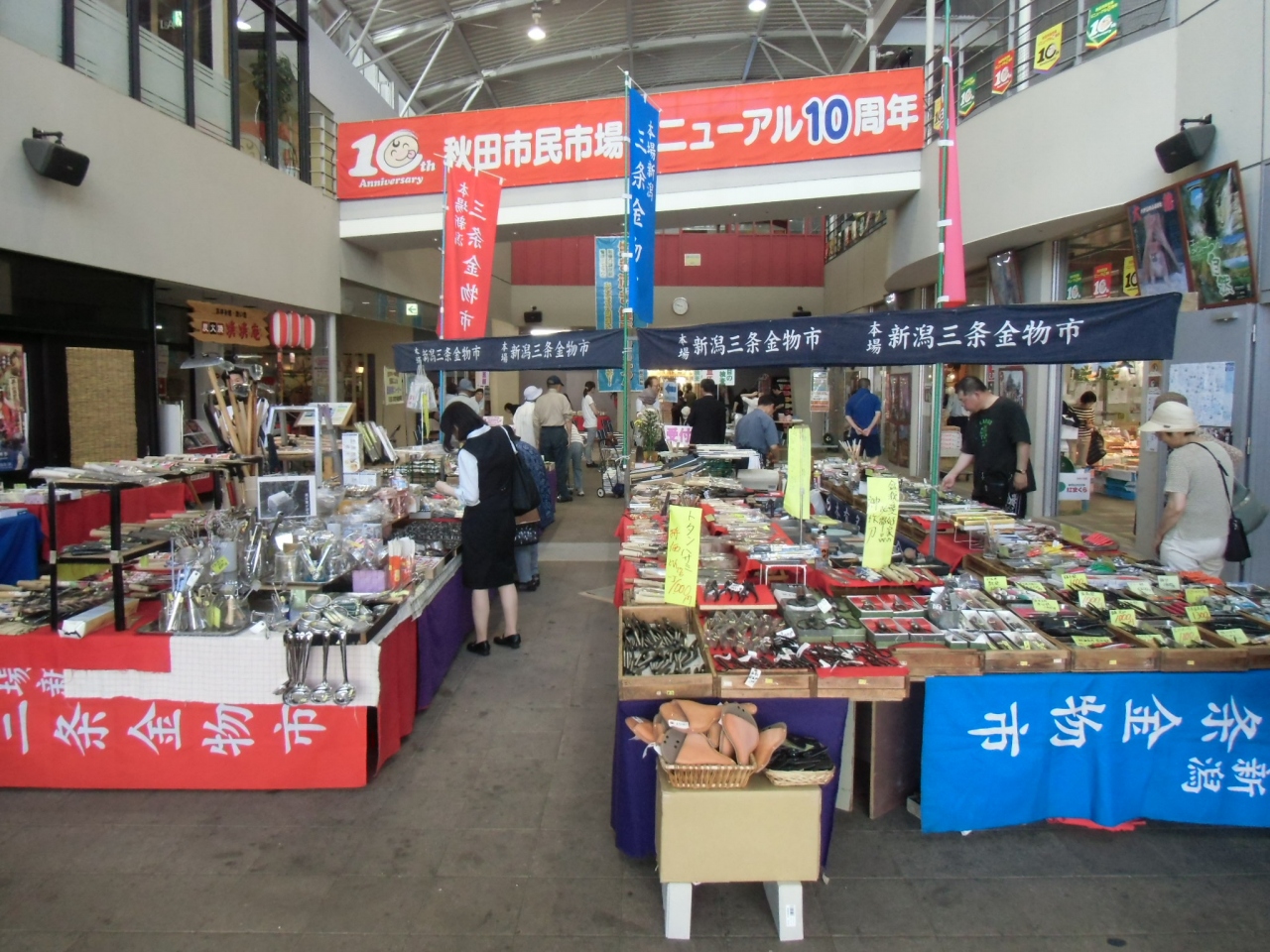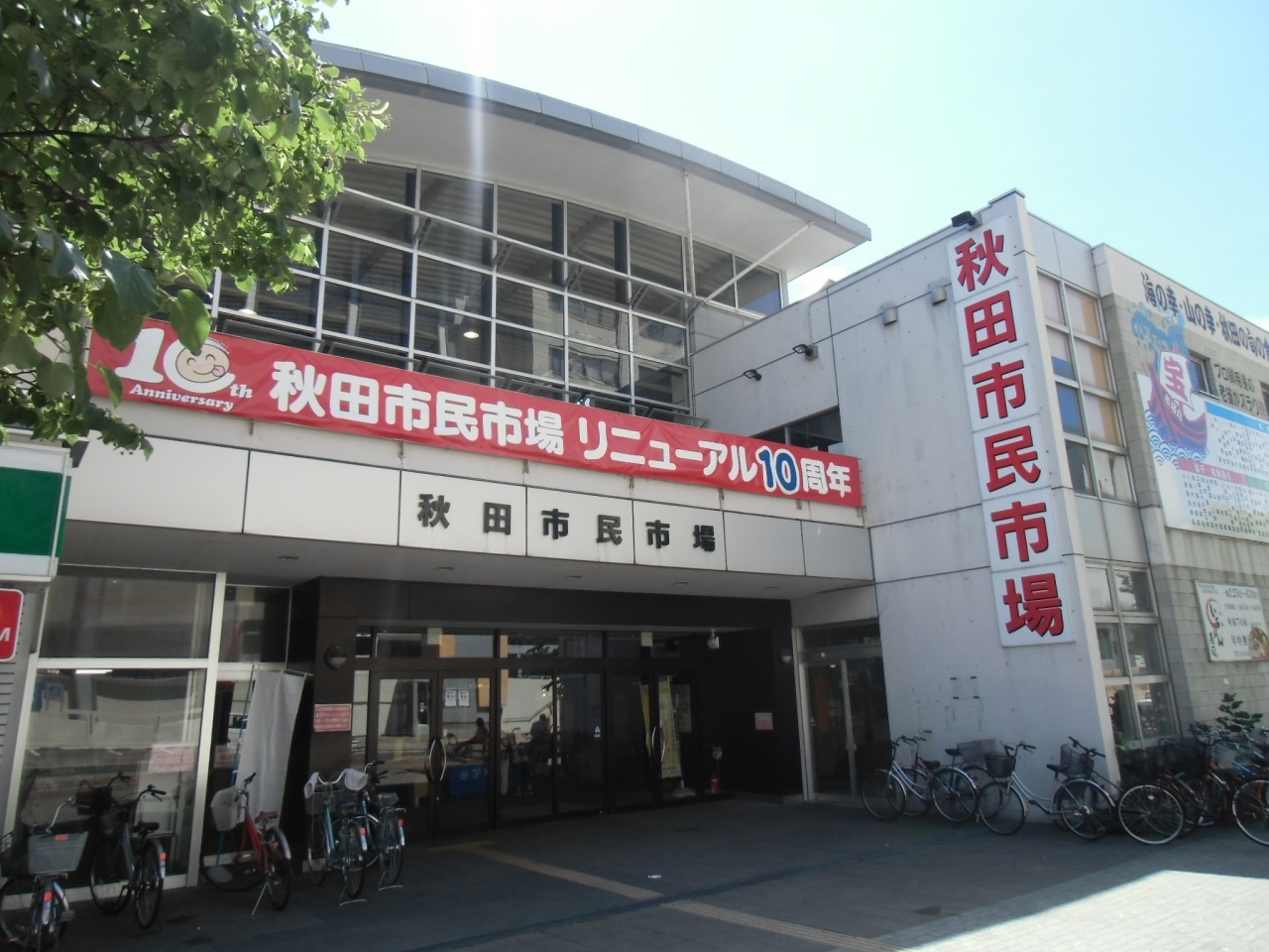 JR秋田駅から徒歩約10分のところにあり、大きな市場の建物の中に青果、鮮魚、海産物、雑貨、精肉、日用品、衣服、食堂などの個人商店がテナント入居しています。市場だから当然地元の商品がいろいろありますが、一番びっくりしたことは、2010年に放送された韓国の人気ドラマ「IRIS」のロケ地だったことです。