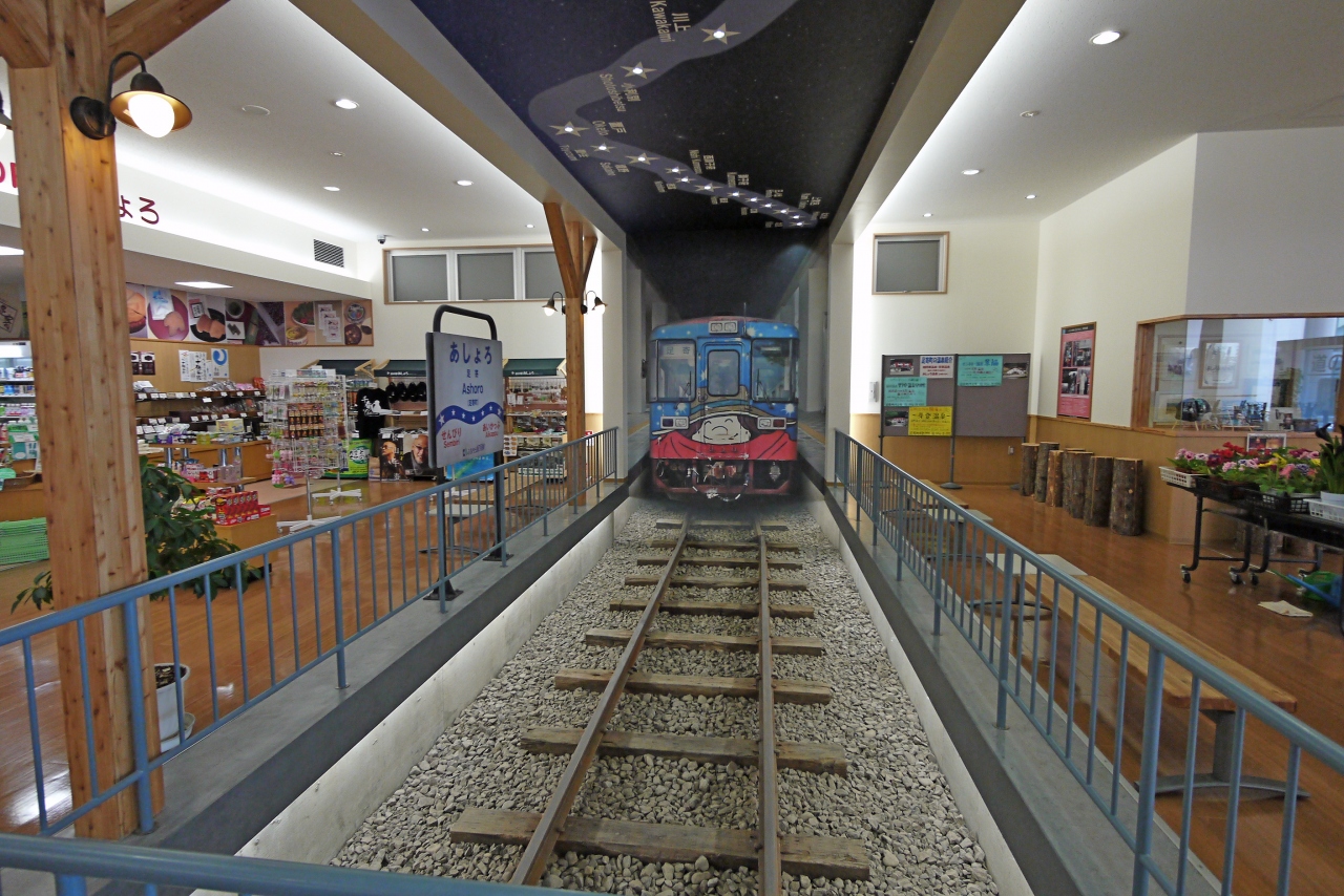 この道の駅,故郷の英雄松山千春とかつての2004年北海道ちほく高原鉄道「ふるさと銀河線」の足寄駅舎として造られたということで,鉄道がモチーフになっている.松山千春の歌はやはり北海道と思う.「大空と大地の中で」がボタンを押すと演奏される記念碑があった.できればもうすこしかつてのちほく鉄道についてつっこんだ展示か,またはディーゼルカーキハ22などが置かれているといいと思ったが贅沢かな.ともかく寄ってよい道の駅と思う.ホールの前の地域交流物産館の280円の足寄放牧牛乳ソフトがおいしかった.