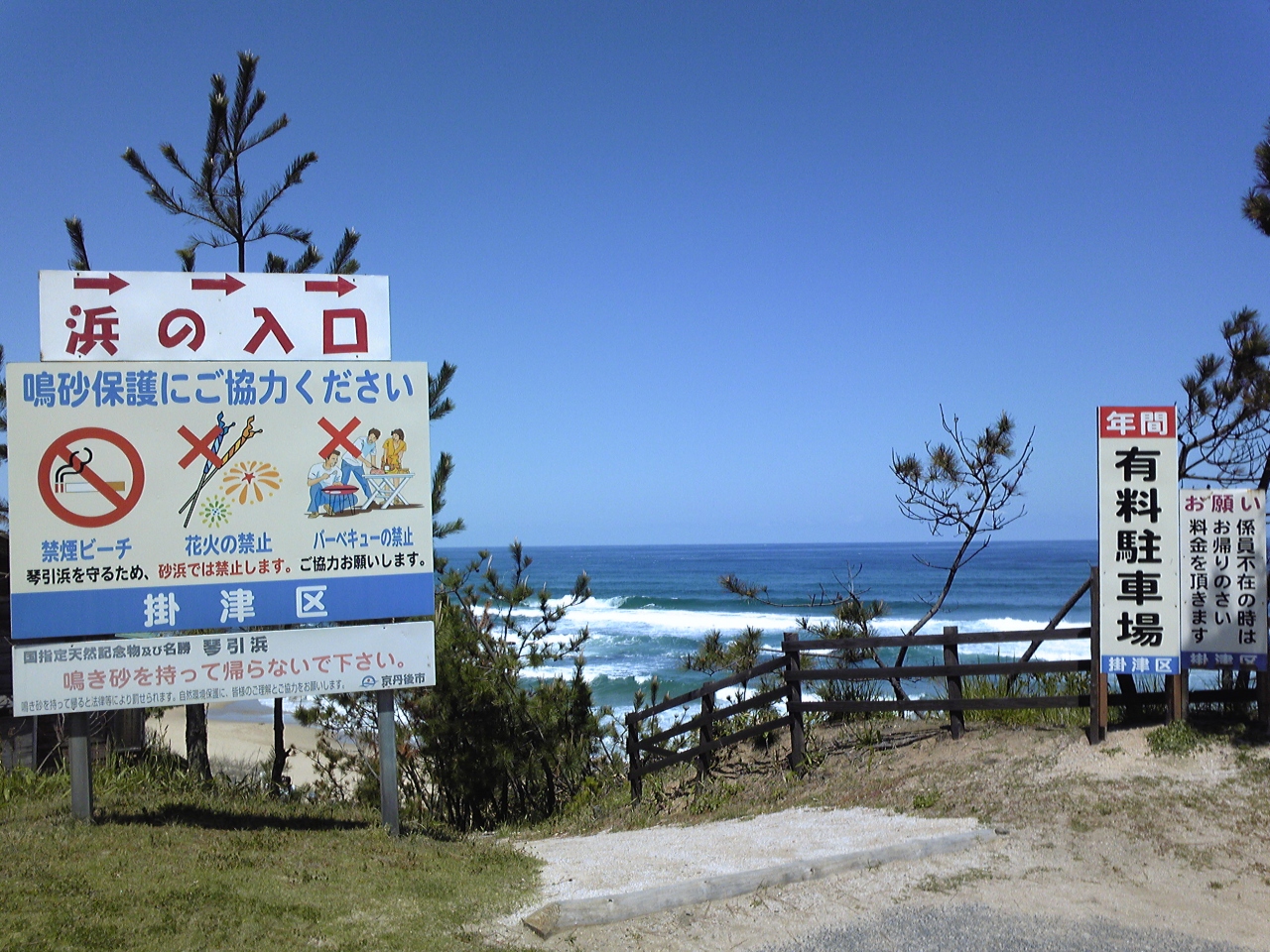 - 琴引浜の目の前に広い駐車場がありますので、車は便利です。最寄りのバス停からも徒歩10分程度のようです。