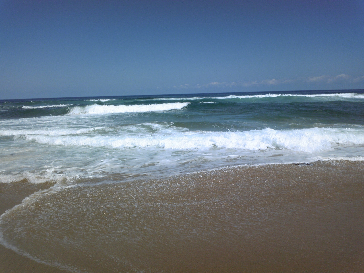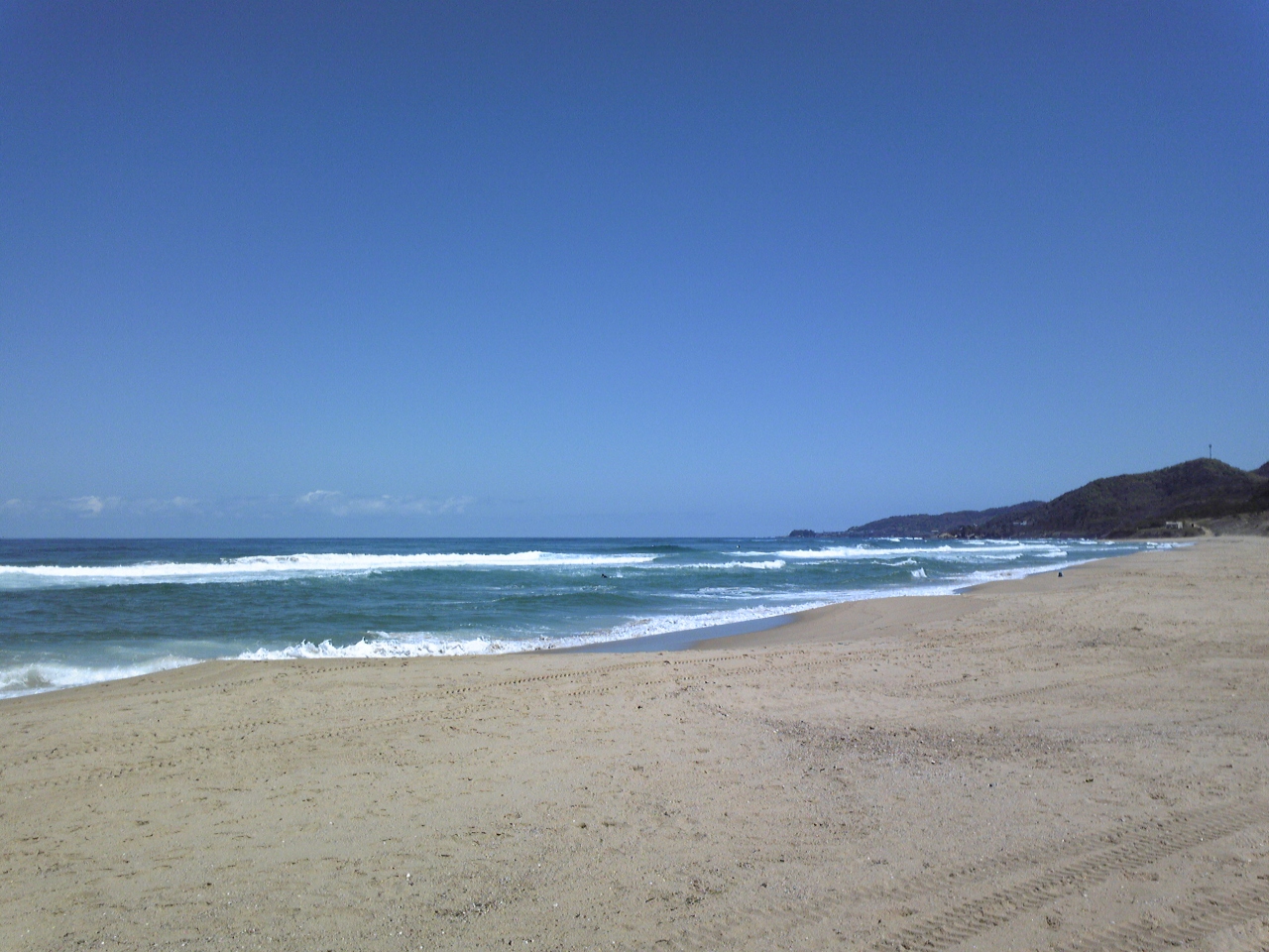 晴れた空、きれいな砂浜、きれいな海、くつろいだ気持ちにさせる波の音、