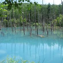 とても神秘的な色の池でした。