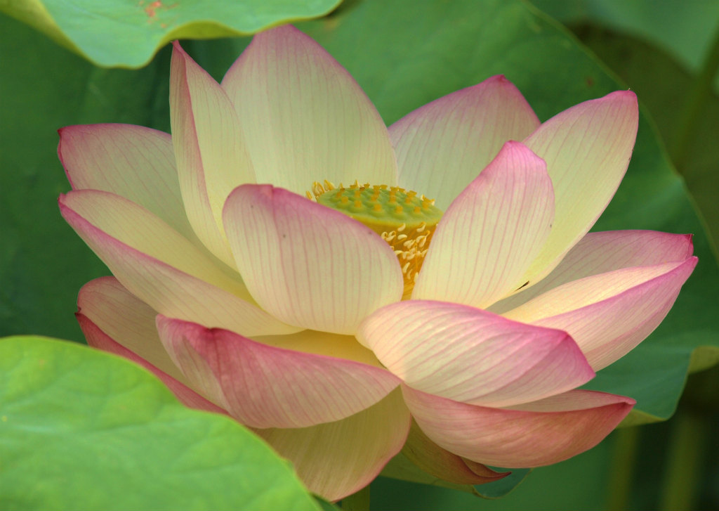 毎年 美し蓮の花を見せてくれる、広い敷地と小さな流れ