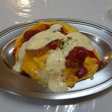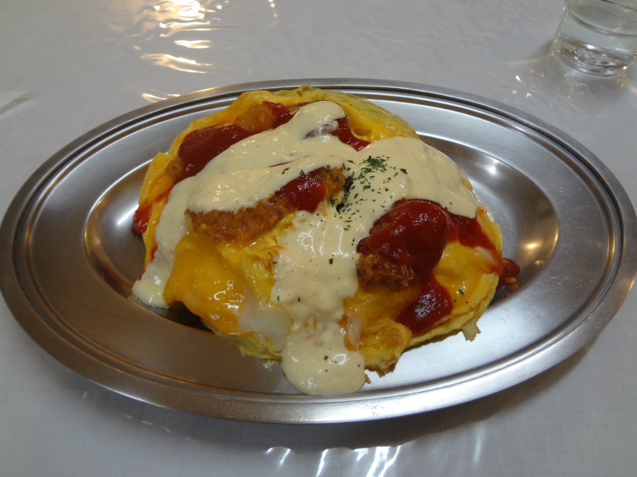 ハントンライスを注文。サイズが2種類あるようですが、お店の方に『あなたはこっちの方がいい』と小さ目のサイズをすすめられたので、そちらにしましたが、それでも十分なボリューム。