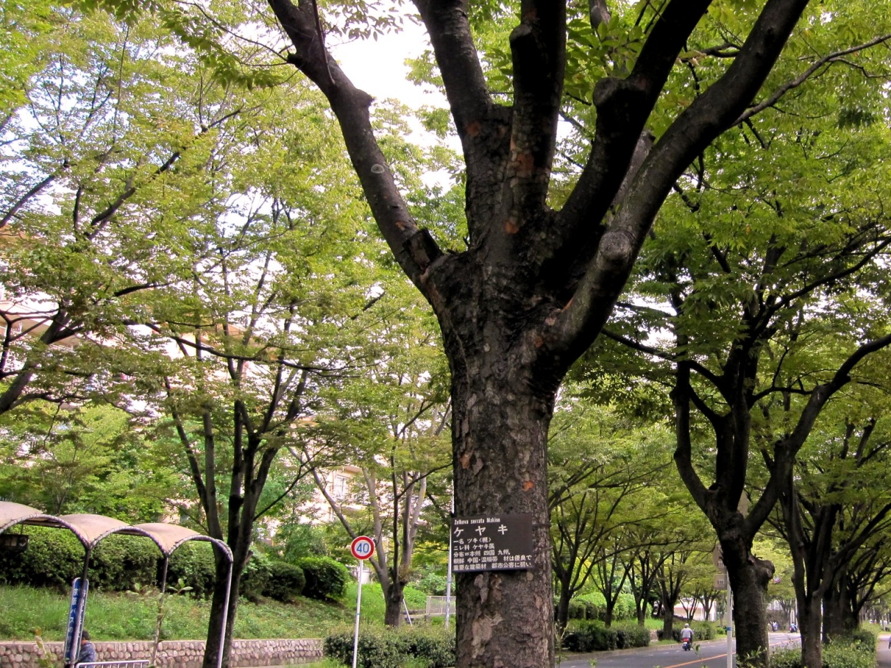 枚方八景の一つである香里団地の並木です。特に「けやき通り」に植えられたケヤキ並木は、大通りを左右からはさんで空を覆うほどに茂りました。春は萌えたつ若葉の色、秋は紅葉して青空に映え、晩秋ともなれば木枯らしに枯葉が一斉に流れるように散って歩道を埋めます。大変綺麗な場所で坂道でありまうので運動がてらに散策をどうぞ。