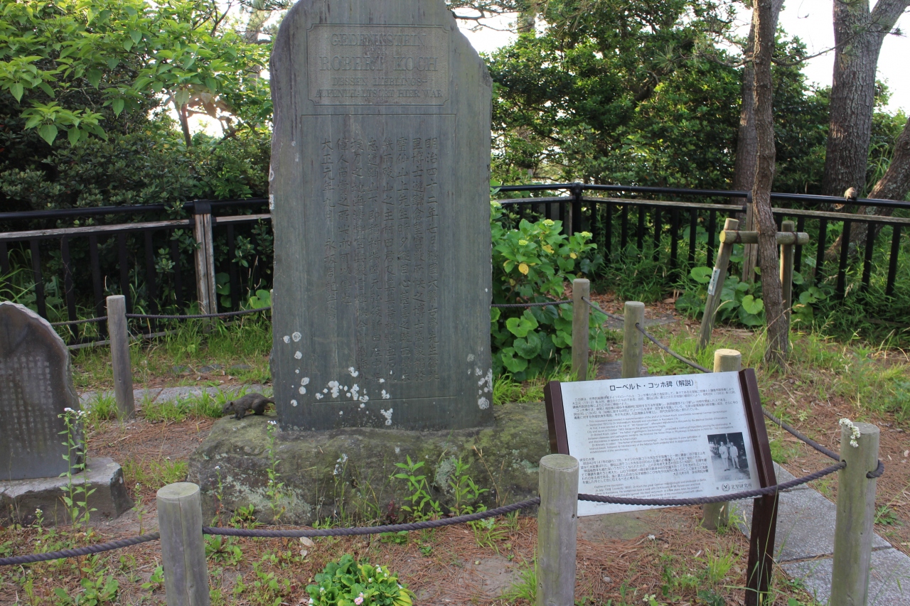 北里柴三郎は、「霊山園」にロベルト・コッホを案内し、のちに記念碑を建てた。