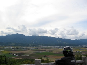 眼下には富良野の町が広がりますが、それ以上に見事なのは町を挟んで向こうにそそり立つ山々の風景です。女性的な盆地と男性的な山々の姿が素晴らしいです。