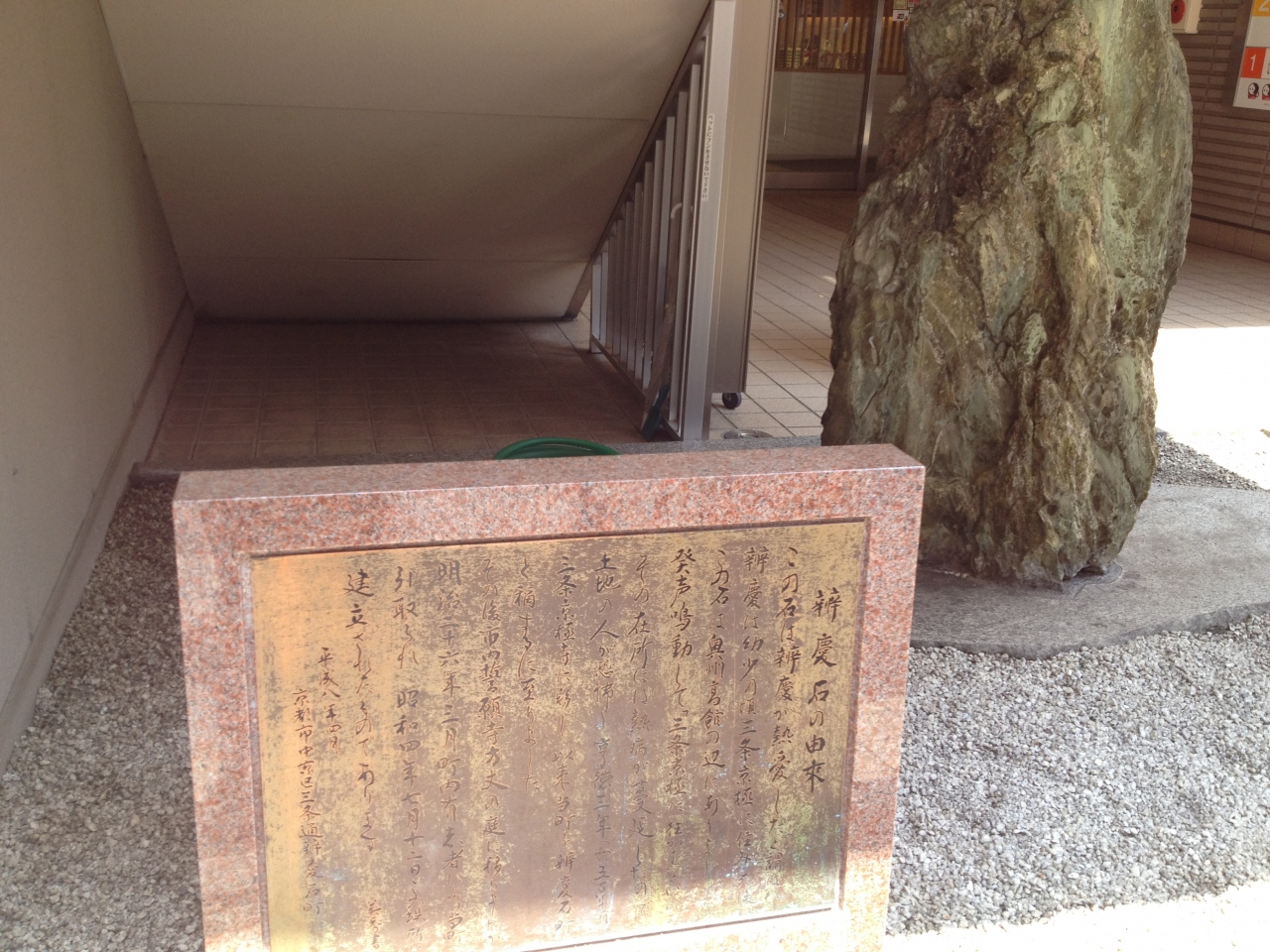 三条寺町から、三条通りを西へ歩きます。すると、お店が立ち並ぶ道の一角、とあるビルの前にぽつん、とこの石があります。弁慶が大切にしていた石で、弁慶が亡くなった後別の地にあったが、石が「京都に帰りたい」と泣くので京都に運ばれた、とかなんとか。。。今は、ビルの階段下のようなところにあってちょっと窮屈そうですが。。
