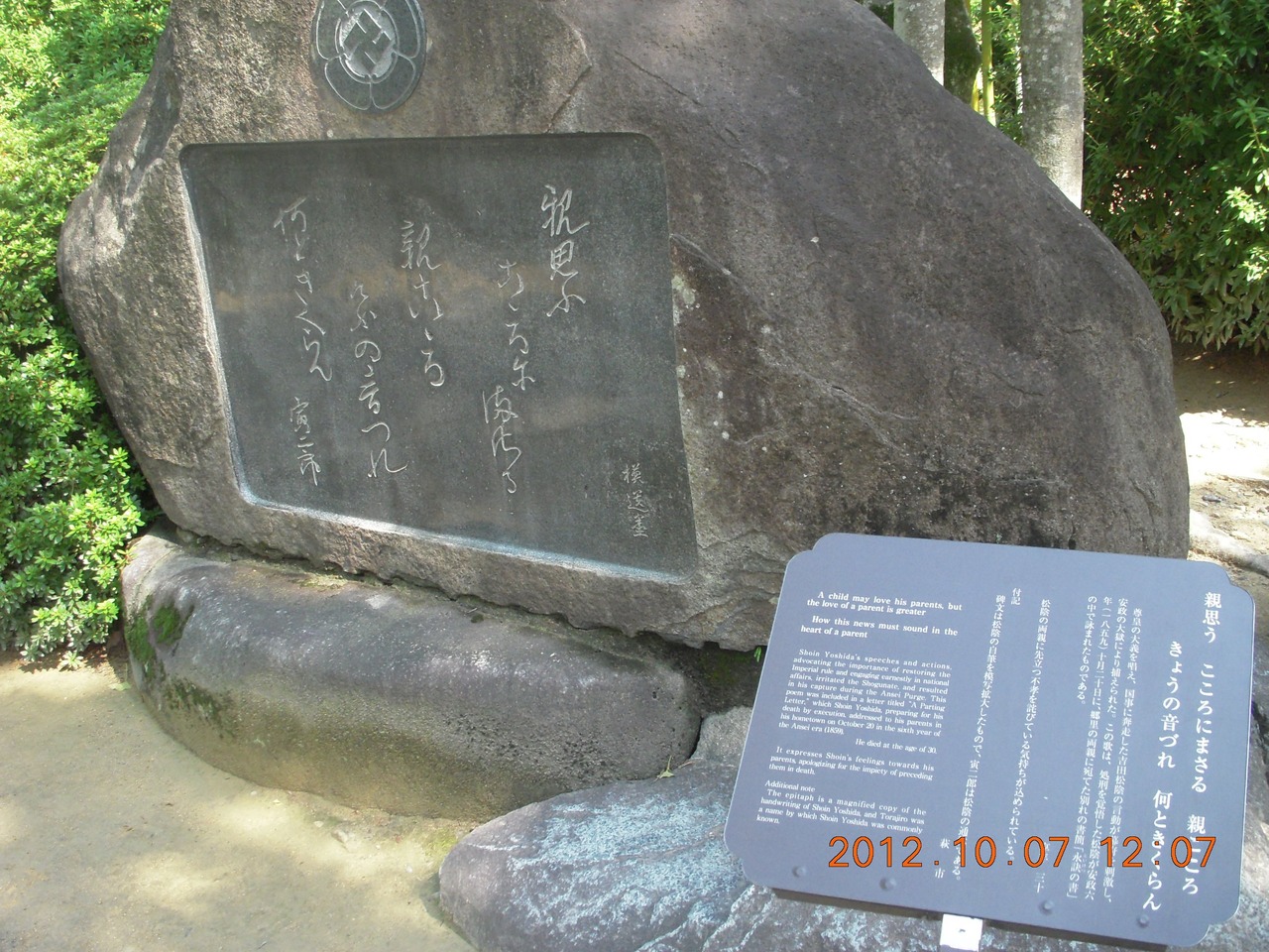 吉田松陰を祀った有名な松陰神社。境内には、松下村塾や記念館があります。なかでも松陰先生の辞世「親思う 心に勝る親心 今日の訪れ いかに聞くらむ」の句碑があり、泣かせます。境内は整備されていて清潔感があります。境内の「留魂録」や松陰先生の語録をおさめたカレンダーなどが購入できます。
