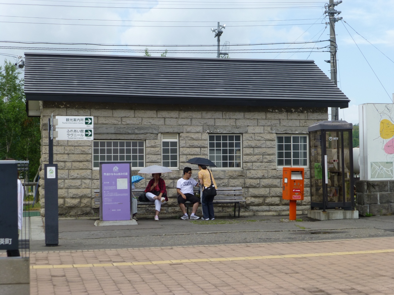 ツインクルバスのガイドさんのお話では周辺でとれる軟石による石造りの駅舎です.切符売り場・改札・待合室の入った建物とトイレ棟の2棟からなっています.また,駅前はきれいに整備されています(美瑛の町全体がきれいな建物ばかりの印象です).駅の反対側にも住宅街をメインにして食事をできるお店などがありますが,そちらにわたるにも駅を背にして左手にエレベーター付きで通路幅の広い立派な跨線橋があります.