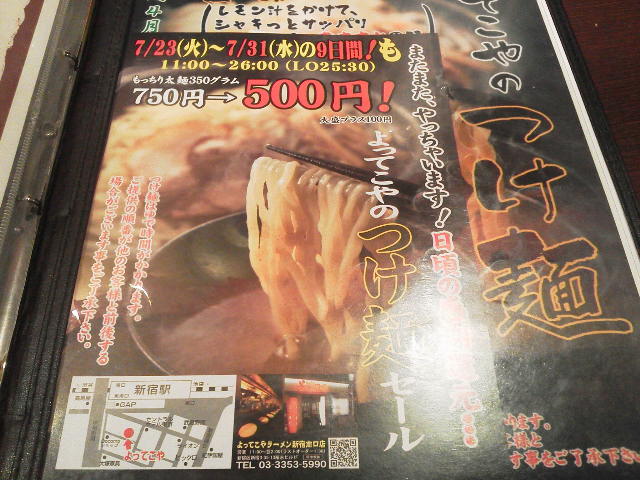 丁度キャンペーン中のようで「塩つけ麺=500円」(通常は750円)でした。