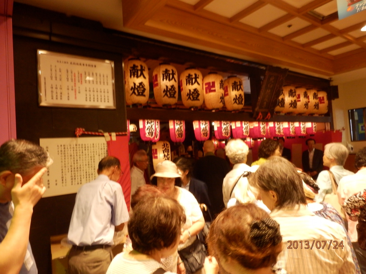 阪急三番街一階紀ノ国屋書店の左側、細い車道をはさんで反対側にある地蔵さん、名前のとおり北を向いてござる、たまたまとおりがかった日が24日この地蔵さんの月並祭の日