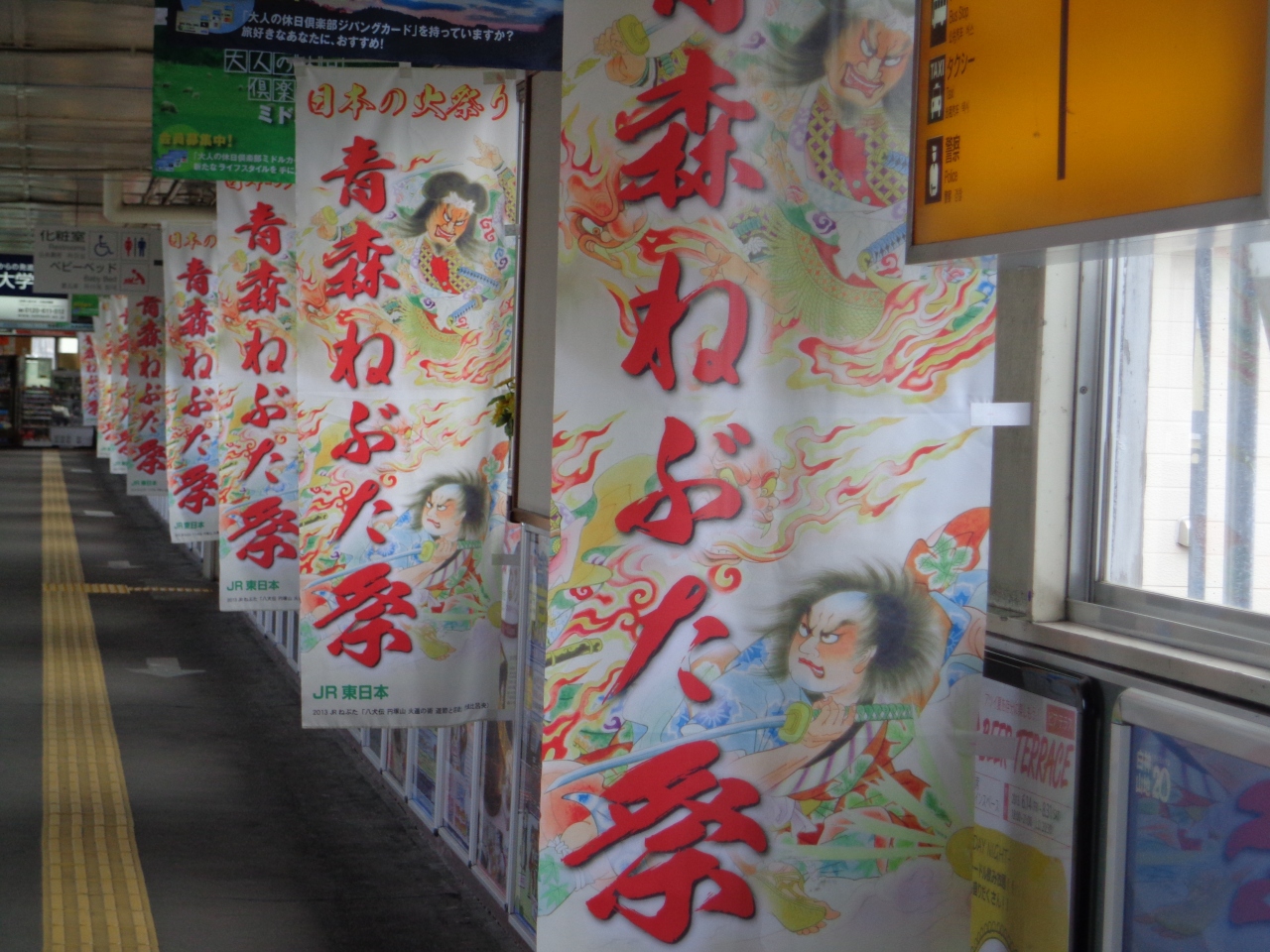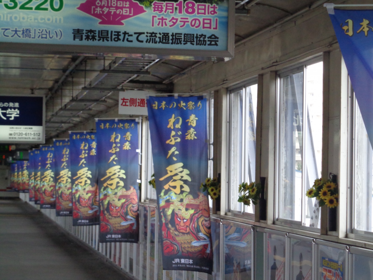 ねぶた祭りも近づき青森駅構内にねぶたの囃子が流れ始めました。