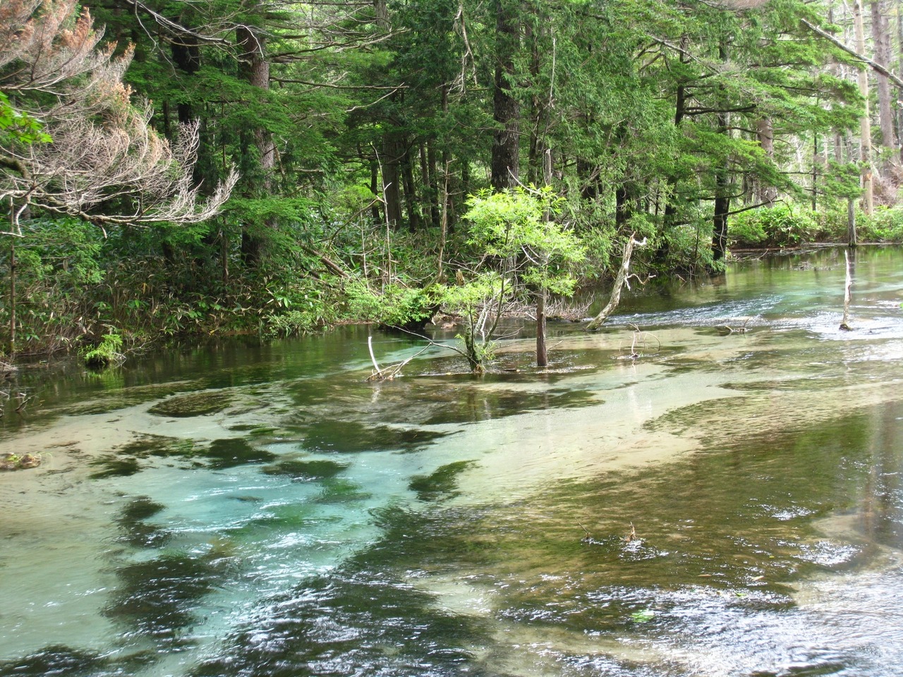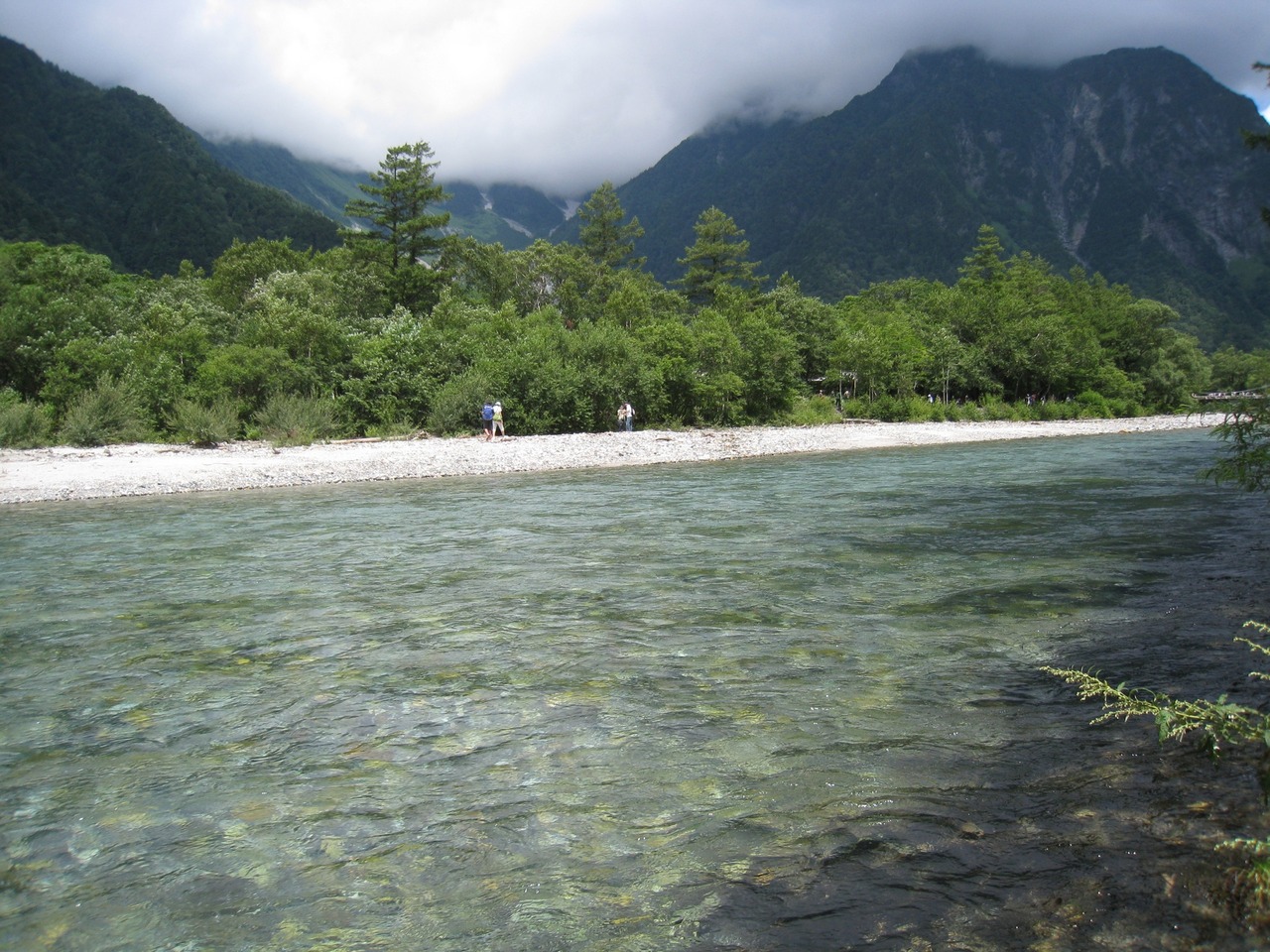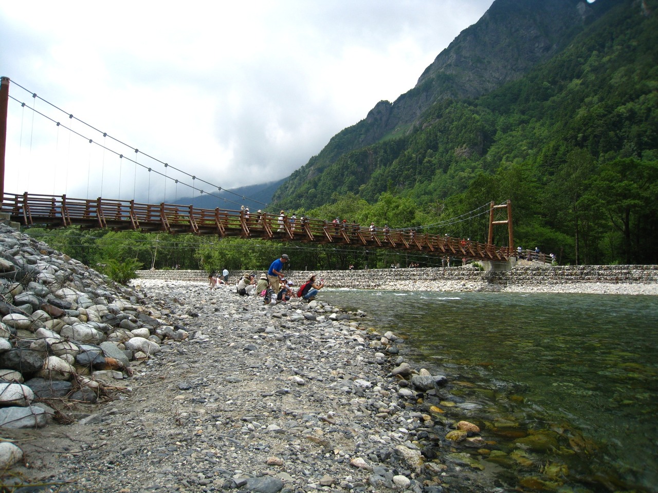 上高地バスターミナルで降り、河童橋から上流に約1時間歩くと明神橋があった。橋近くの河原に座り、途中で買ったおやきで昼食。足を水に浸けると、あまりの冷たさに10秒と浸けてられなかった。明神橋を渡って対岸に行くと、ウッドデッキの遊歩道があったり、緩やかな流れの川の支流があり、川から木立が生えており、写真で見るような光景がいたるところで見られた。夏で蒸し暑い時期だったが、木々に囲まれ、清流が至る所で流れている様はすごい清涼感があった。紅葉や新緑の時期に行くとまた違った表情が楽しめると思う。