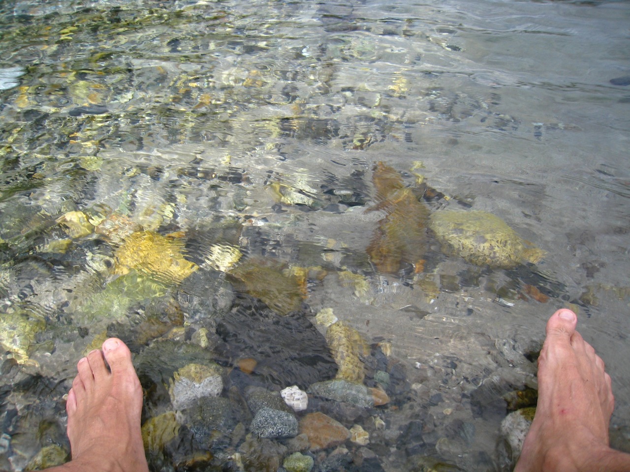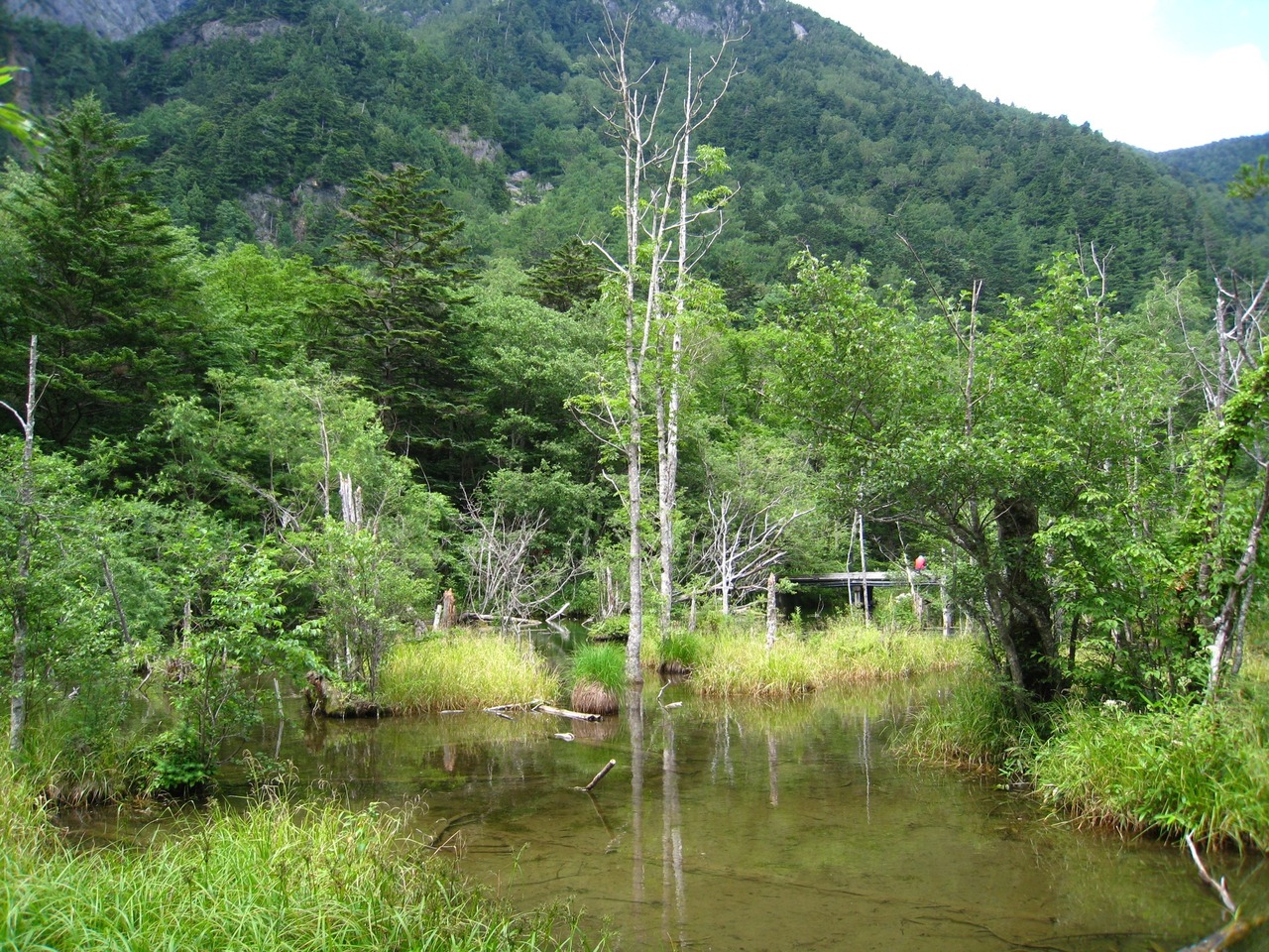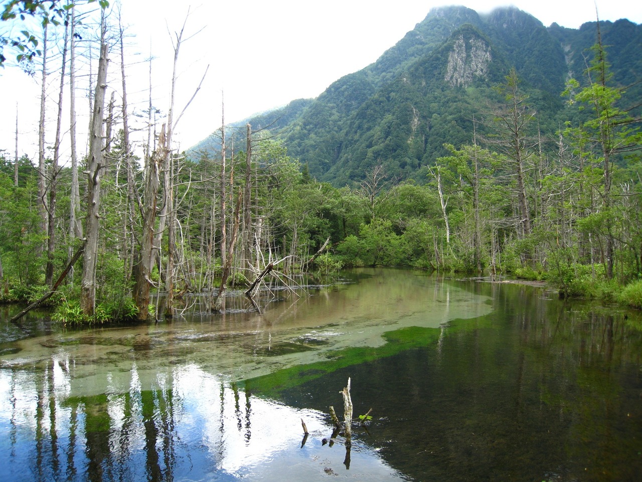 上高地バスターミナルで降り、河童橋から上流に約1時間歩くと明神橋があった。橋近くの河原に座り、途中で買ったおやきで昼食。足を水に浸けると、あまりの冷たさに10秒と浸けてられなかった。明神橋を渡って対岸に行くと、ウッドデッキの遊歩道があったり、緩やかな流れの川の支流があり、川から木立が生えており、写真で見るような光景がいたるところで見られた。夏で蒸し暑い時期だったが、木々に囲まれ、清流が至る所で流れている様はすごい清涼感があった。紅葉や新緑の時期に行くとまた違った表情が楽しめると思う。