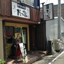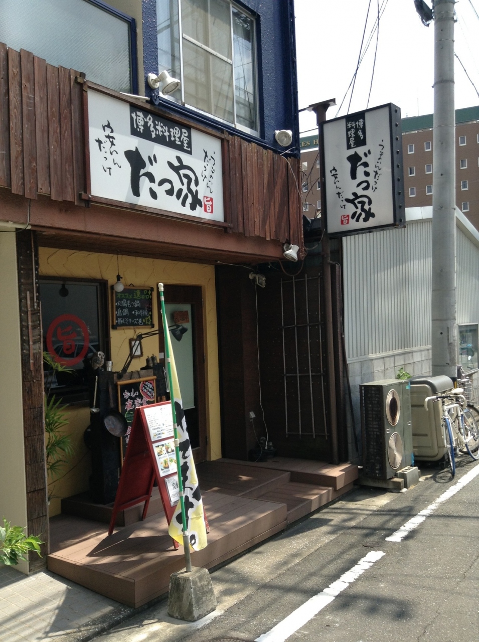 中洲川端駅をリバレイン側出口から出て、昭和通りを越えて一本入った所にあります。夜は居酒屋さんです。店内は手前に掘りごたつ、奥にカウンターとテーブルがあります。ランチで利用しましたが、コロッケ定食650円で、手づくりコロッケがじゃがいもホクホクで美味しいです。梅しそを豚肉で巻いたフライ定食も美味しかったです。
