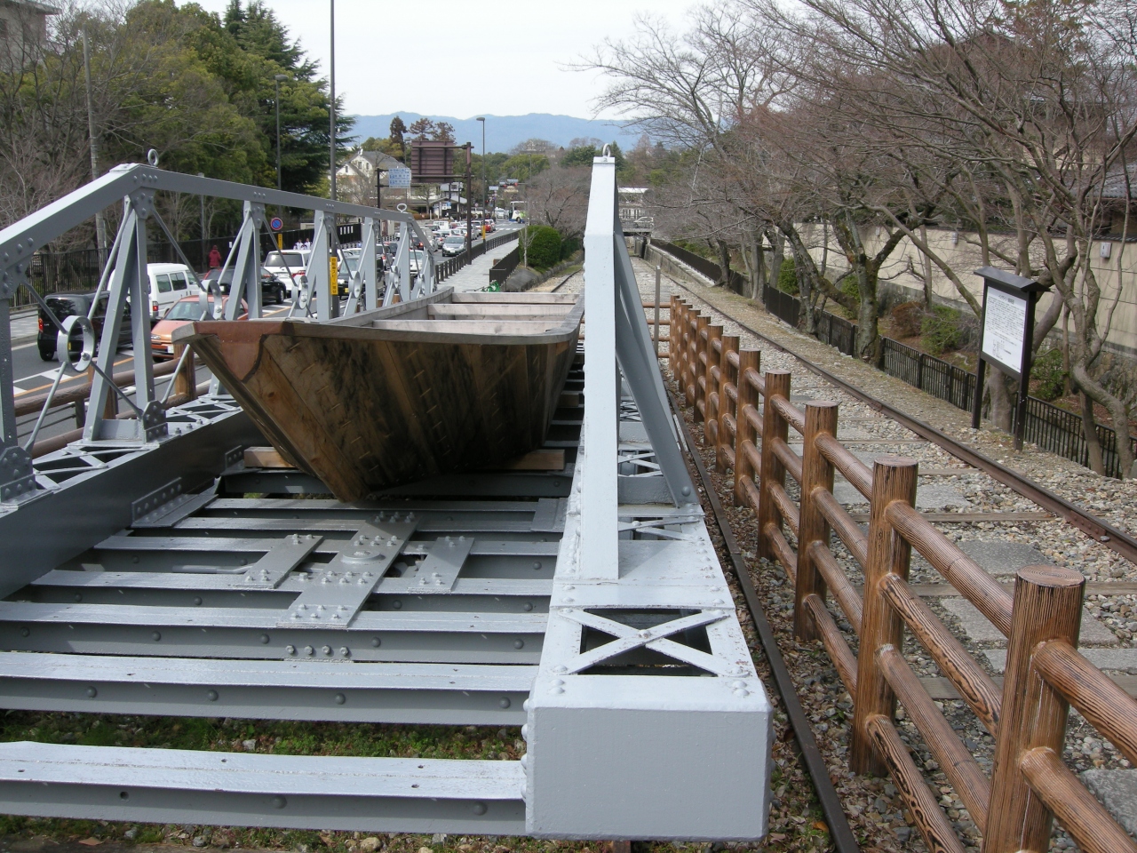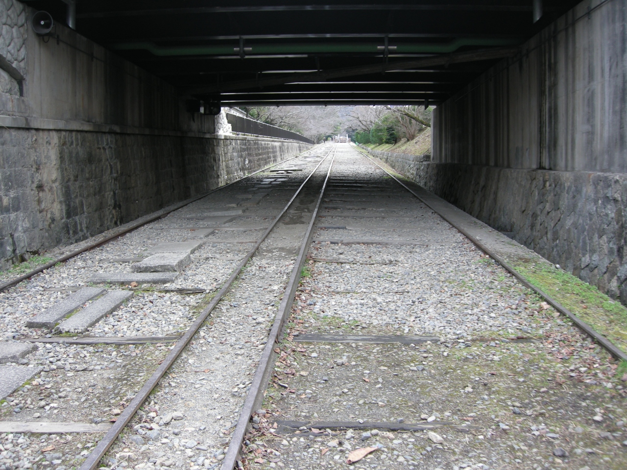 琵琶湖疏水の大津から宇治川に至る20.2キロの舟運ルートの途中、水路落差のある2カ所に敷設した傾斜鉄道。蹴上インクラインは延長581.8メートルで世界最長。伏見インクラインは延長290.8メートル。1890年代(明治23~)に完成、1940年前後(昭和15前後)に休止。蹴上のみ形態保存。蹴上インクラインは線路上を歩くことができます。サクラの季節に来たい場所です。