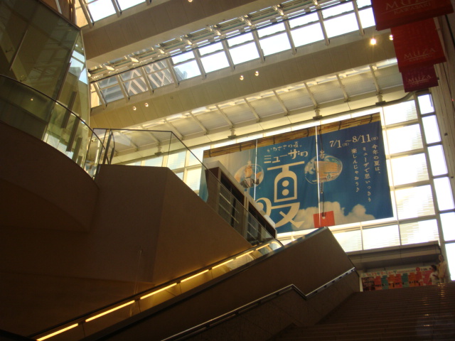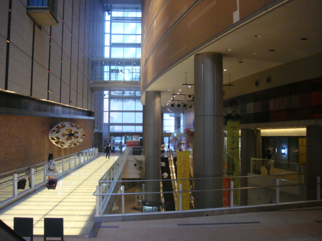 シンフォニーホールへの通路は床に蛍光灯が埋め込まれており、天井は広く吹き抜けになっており解放感があります。
