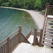 この場所は以前は中禅寺湖金谷ホテルのレストランが有った所なので、景色は良いですし周りが林の目の前が湖の静かに寛げる場所です。