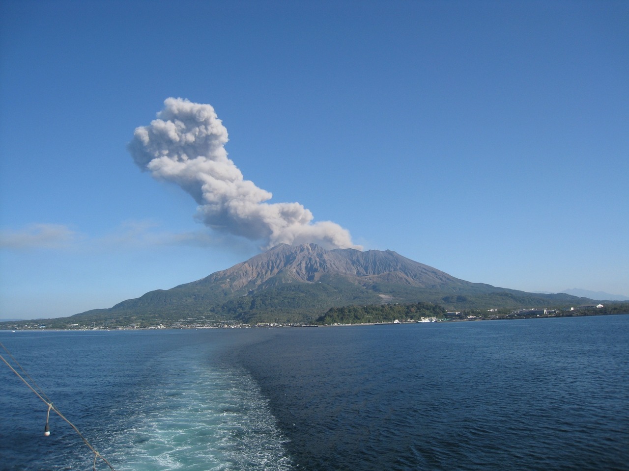 とても有名な桜島。でもしっかりと見たことはなかったので、フェリーに乗って行ってみることにしました。フェリーに乗る前は普通の山。出航してまもなくするとどんどん噴煙が上がり始め、その噴煙が風で広がっていくのがほんの10分くらいで見られました。目の前の山が噴煙を上げている様は初めて見たので、その迫力に圧倒されました。