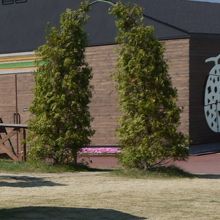 周辺にブランコや農作業の車などが置いてあって、子供は喜んで乗っていました。