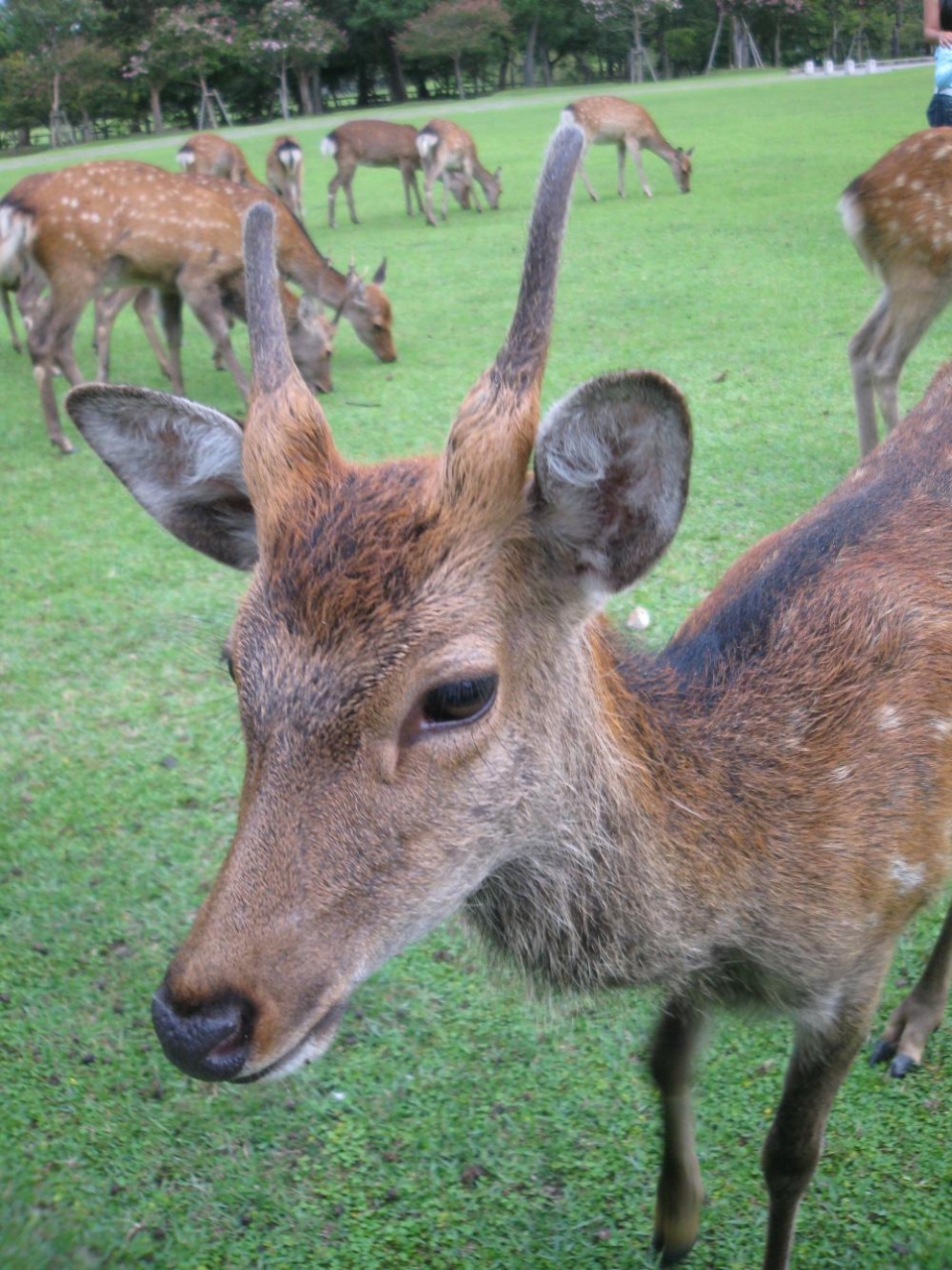 奈良公園は国の名勝・日本さくら名所100選にも選定されているらしいです。公園内の大部分は芝生に覆われていて塀や柵や門もありません。約1200頭の鹿がいるらしく自由に触れ合えます。奈良公園及びその周辺で生息するシカ(ニホンジカ)として天然記念物に指定されているらしいです。もちろんいたずらは禁止です。
