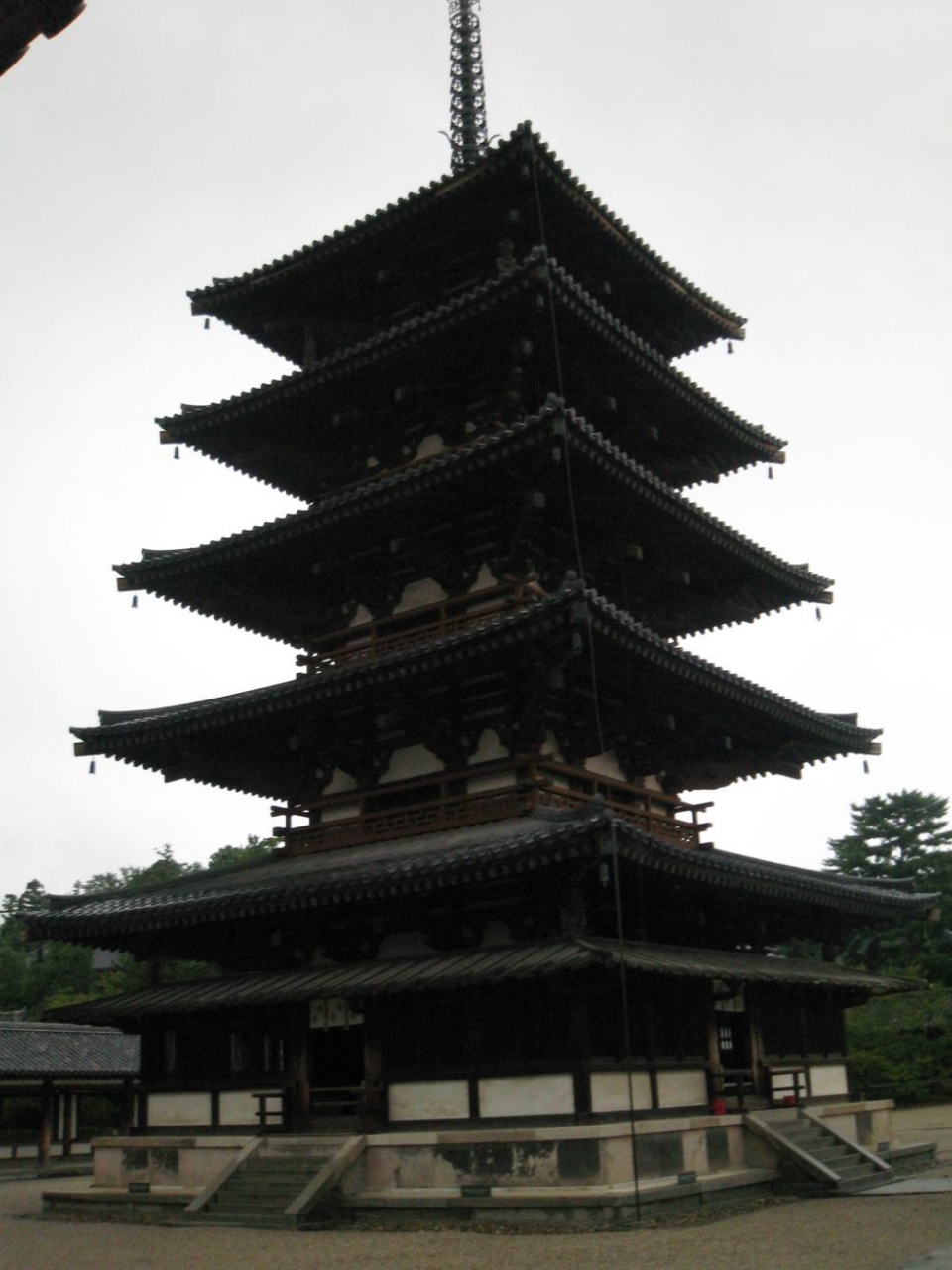 五重塔は木造塔として世界最古で国宝です。五重塔の高さは約34mあります。ヒノキで造られていて約1300年地震に耐えてきたらしく組み上げて重ねるように積み上げていて揺れを吸収するらしいです。地震を吸収させるこの柔構造理論が超高層建築に採用され最先端建築技術に生かされているというのがなかなか感慨深い話でもあります。