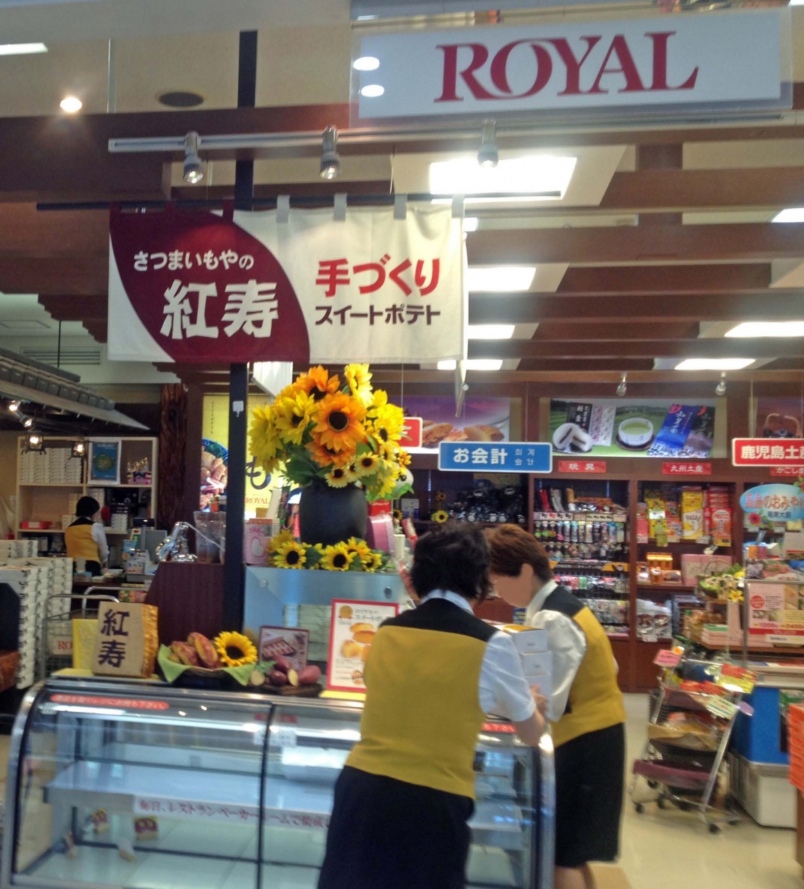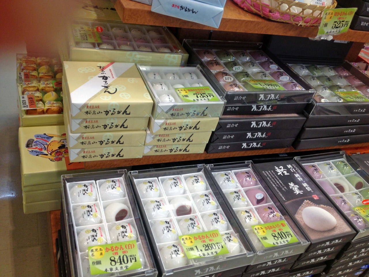 ロイヤルのスイートポテト、紅寿(ベにことぶき)、かるかんまんじゅうなどが並びます。ロイヤル店内に、薩摩蒸気屋や有村屋も出店していて、鹿児島の名産品が何でもそろうといった感じです。