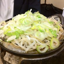 ねぎ、ごぼうをたっぷり乗せて、甘辛の割り下をかけグツグツ煮込むと一層味が引き立ちます。