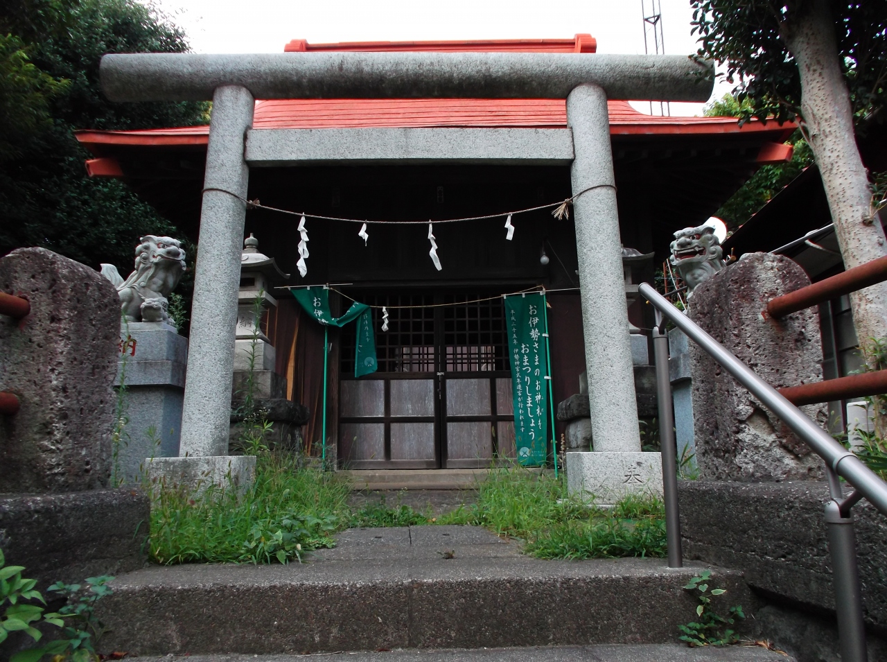 横浜市営上飯田団地に囲まれてるところにあります。道沿いより一段と高く石段を登るとこじんまりとしたお社と会館(町内)がありますが、境内は草茫々。すぐ後ろに団地が迫ってる。ここだけ昔からの鎮守さまの面影をちょっぴり漂わせてはいますが・・・。