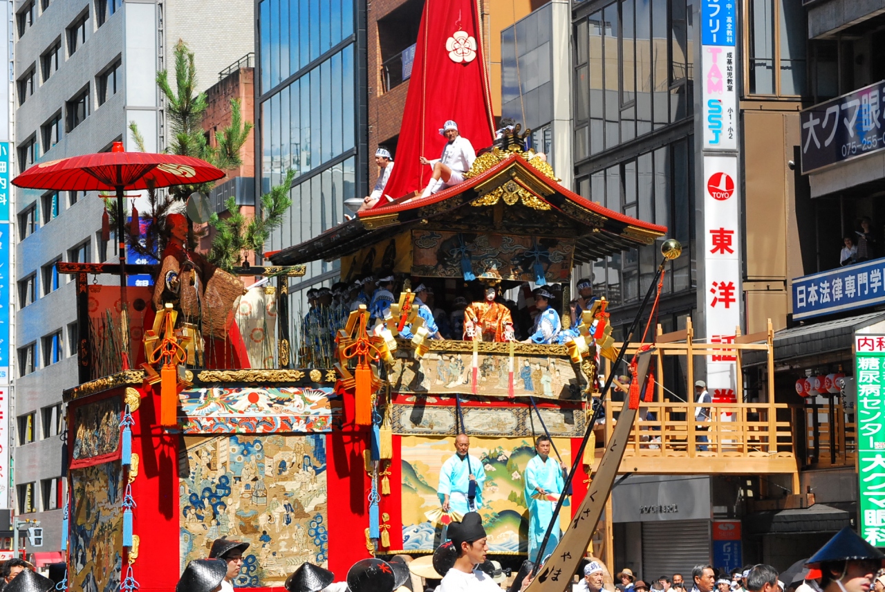都の夏の風物詩で、7月1日から1か月間にわたって行われる長い祭であるが、そのなかでも「宵山」(7月14日~16日)、「山鉾巡行」(7月17日)、「神輿渡御」(7月17日)などがハイライトとなっている。