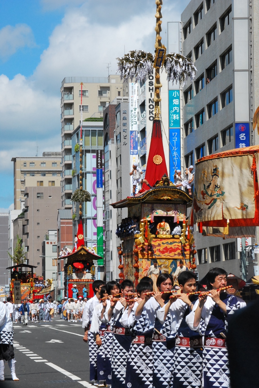 山鉾からは祇園囃子のコンチキチンという独特の節回しが聞かれる。